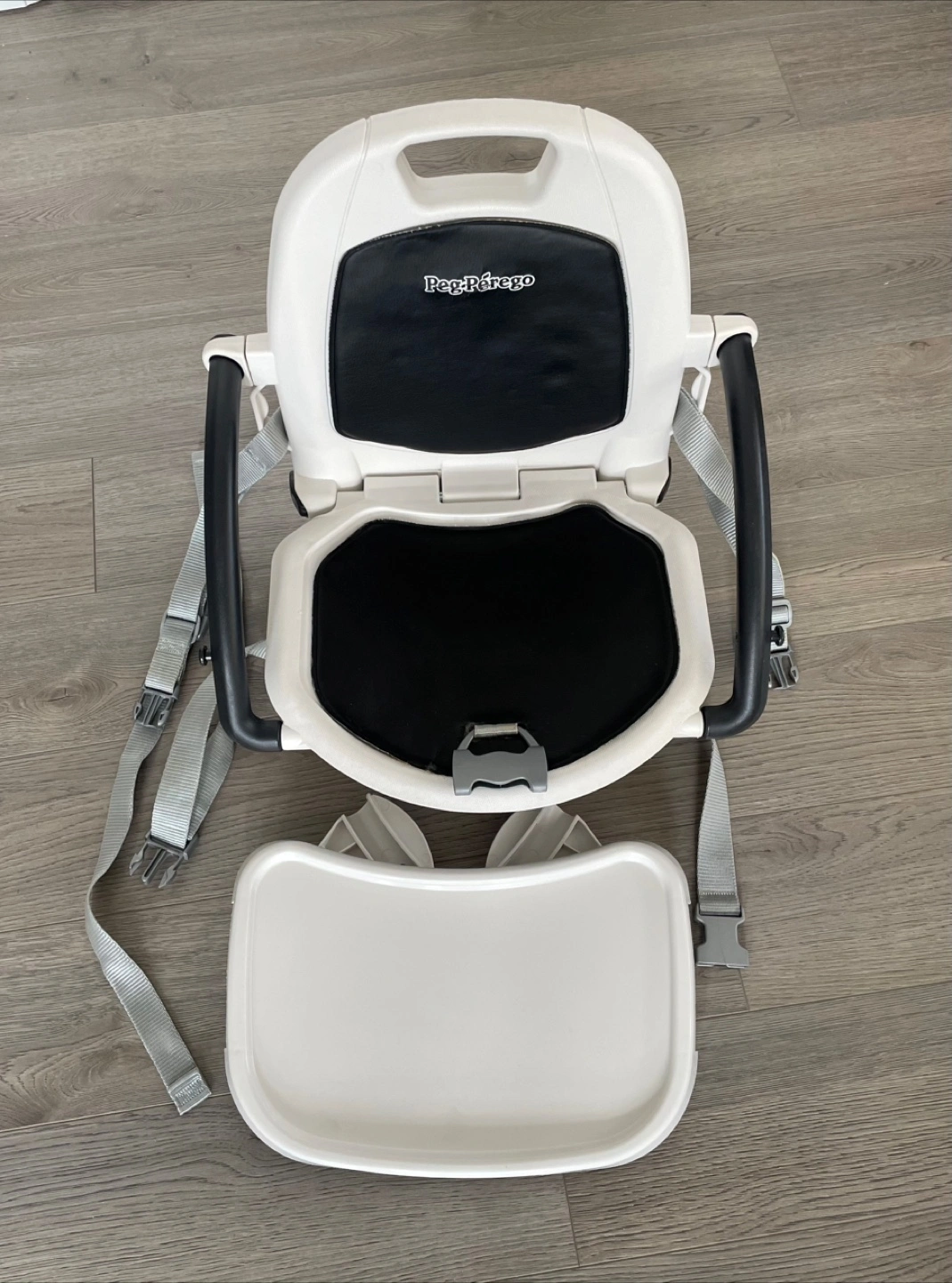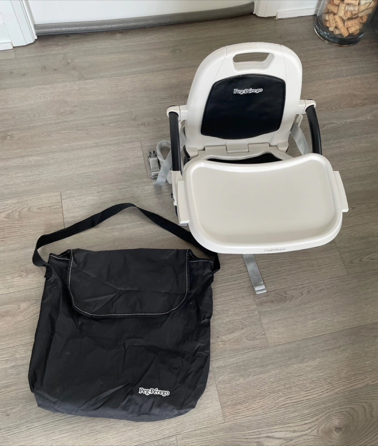 This Peg Perego booster seat is perfect for families on the go, providing a safe and comfortable spot for your little one at any table. As you can see from the photos, this booster seat is in good used condition.