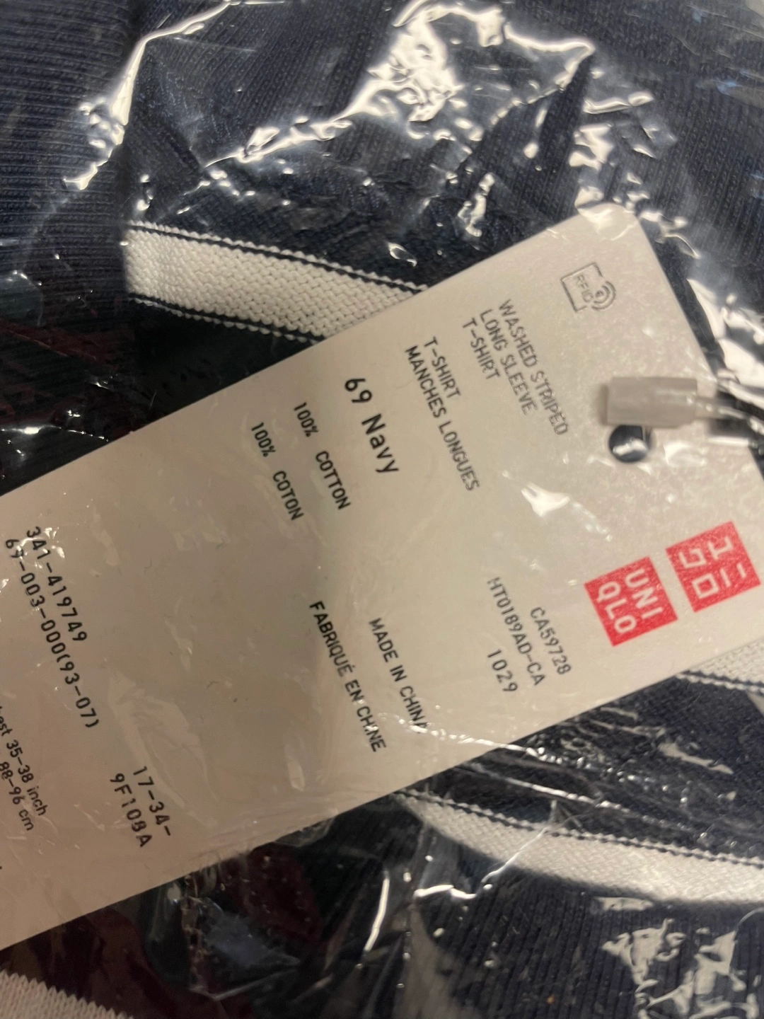 I'm selling a brand new with tags Uniqlo striped long sleeve T-shirt (men) in size small! The colour is navy with white stripes and it's made of 100% cotton. Cash, self pickup.
