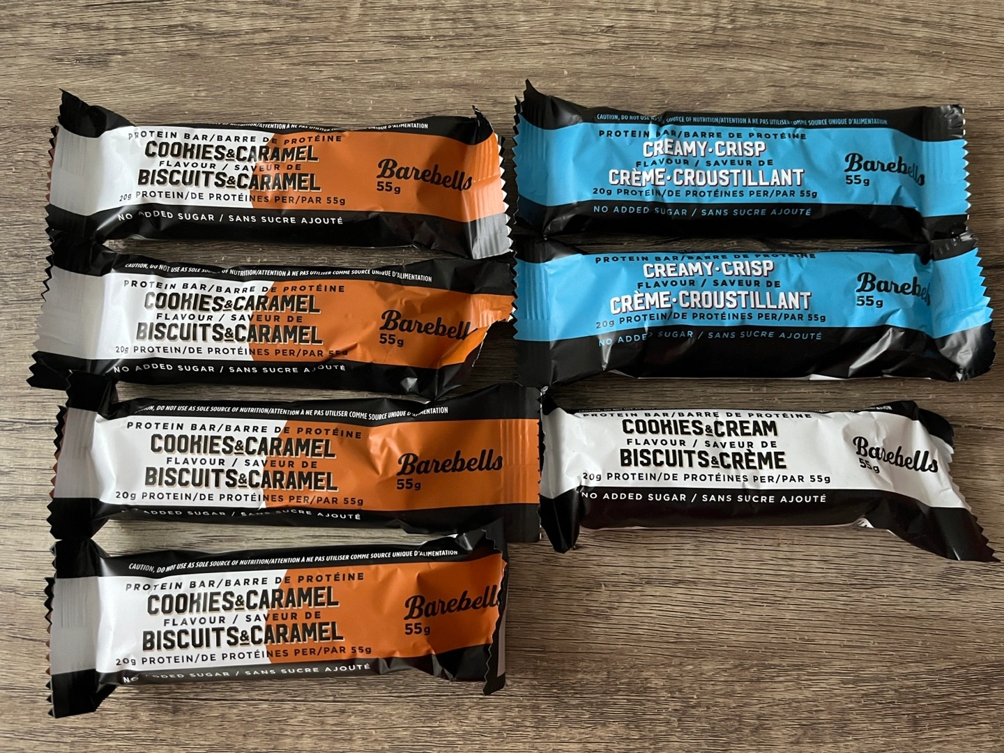 $3 each or take all 7 for $20. Each bar contains 20g of protein, with no added sugar. Flavours include Cookies & Caramel, Creamy Crisp, and Cookies & Cream.