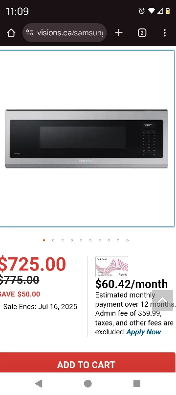 - 1 Samsung Over the Range Stainless Steel Microwave 1.1 cu ft. slim low