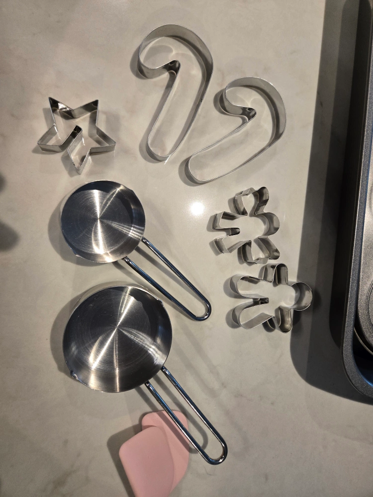 Looking to get your bake on? This set is a great way to get started! It includes a muffin pan, cooking pan, rolling pin, two measuring cups, two spatulas, and five cookie cutters. Perfect for holiday baking or any time you want to whip up something delicious!