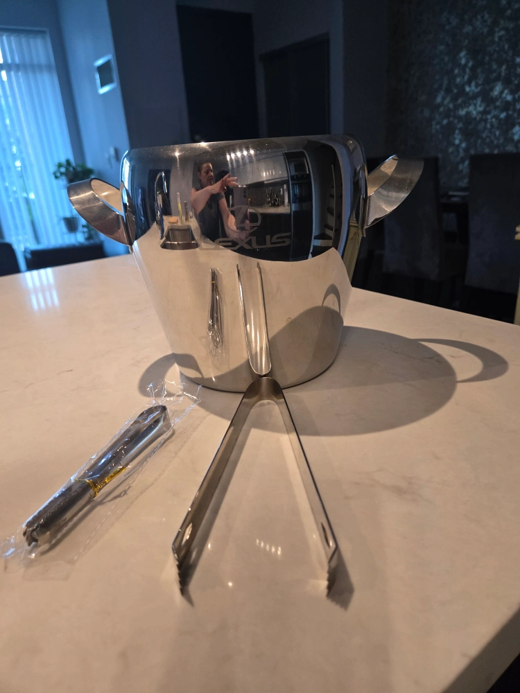 Selling a silver ice bucket with Lexus logo - perfect for keeping your drinks cool! It comes with two tongs - small and medium, so you're all set for entertaining. It's in great shape and ready to use for your next gathering