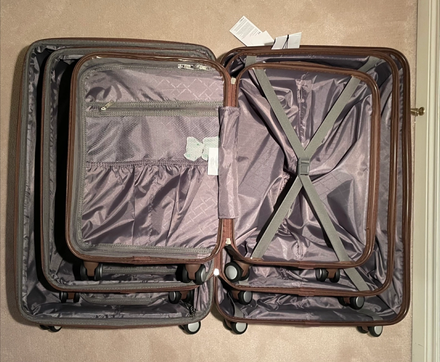 Unit has been tested and is fully functional. VERY MINOR dent on top left of large suitcase from shipping. Dent appears more significant in picture. OEM box included.