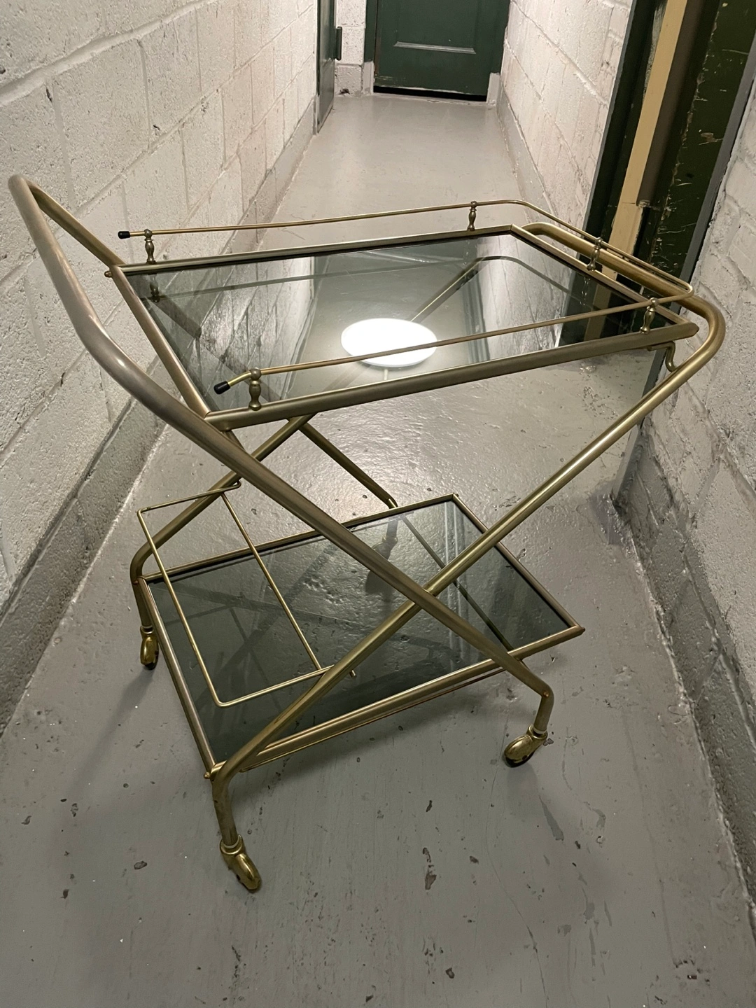Selling a stylish gold bar cart featuring two glass shelves! This cart is perfect for adding a touch of elegance to your home decor. It's in great condition and ready to roll into your space