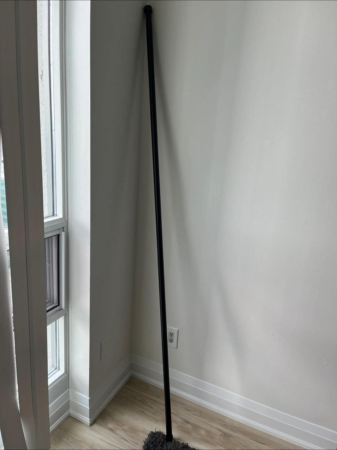 Selling a black curtain rod with mounting brackets. It's in good condition and ready to hang! There are some scratches on the rod. (No screw )