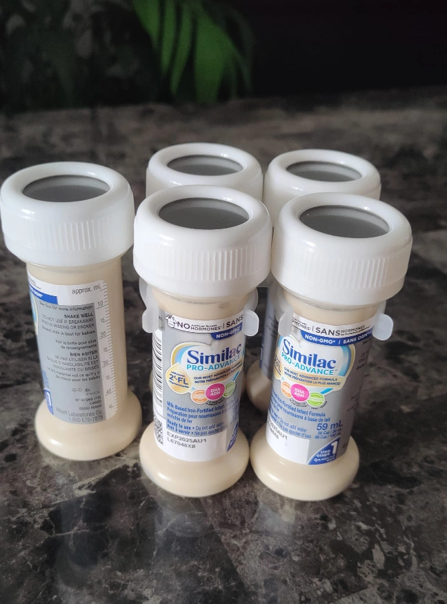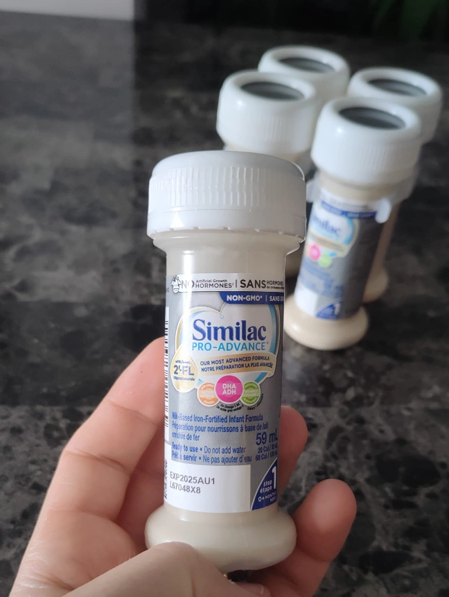 Selling 5 Similac Pro-Advance infant formula bottles. Each bottle contains 59mL of milk-based, iron-fortified formula. Expiry date is 2025 August 01