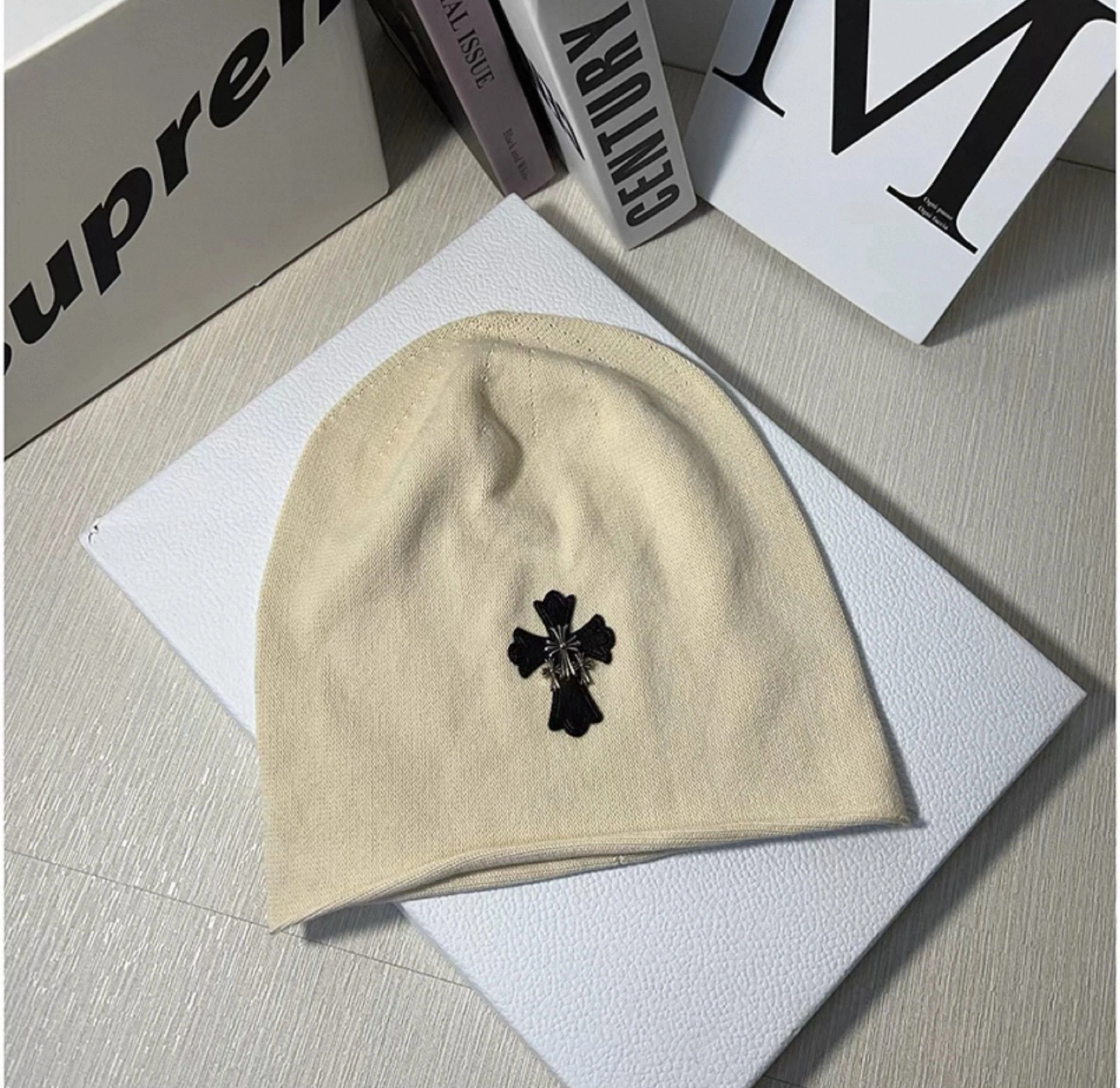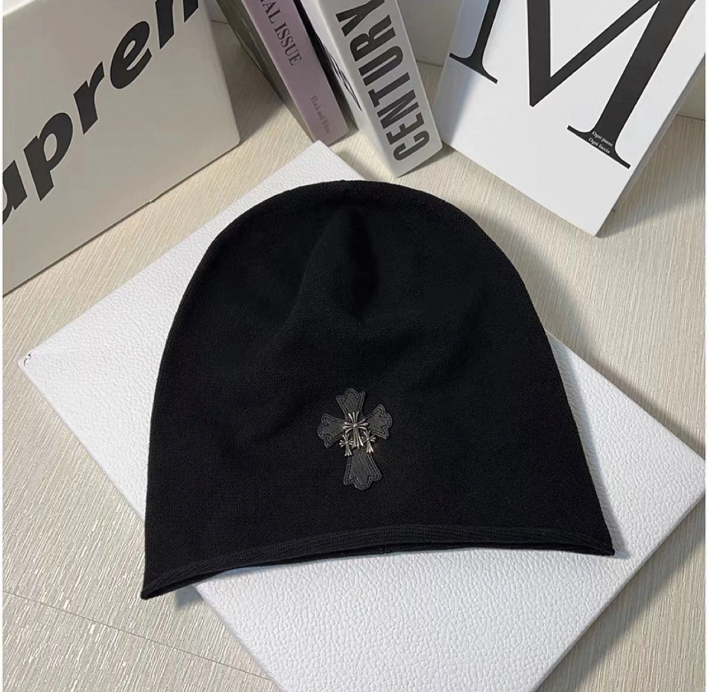 Selling a Chrome Hearts beanie in black. It features the iconic cross logo. In great condition!