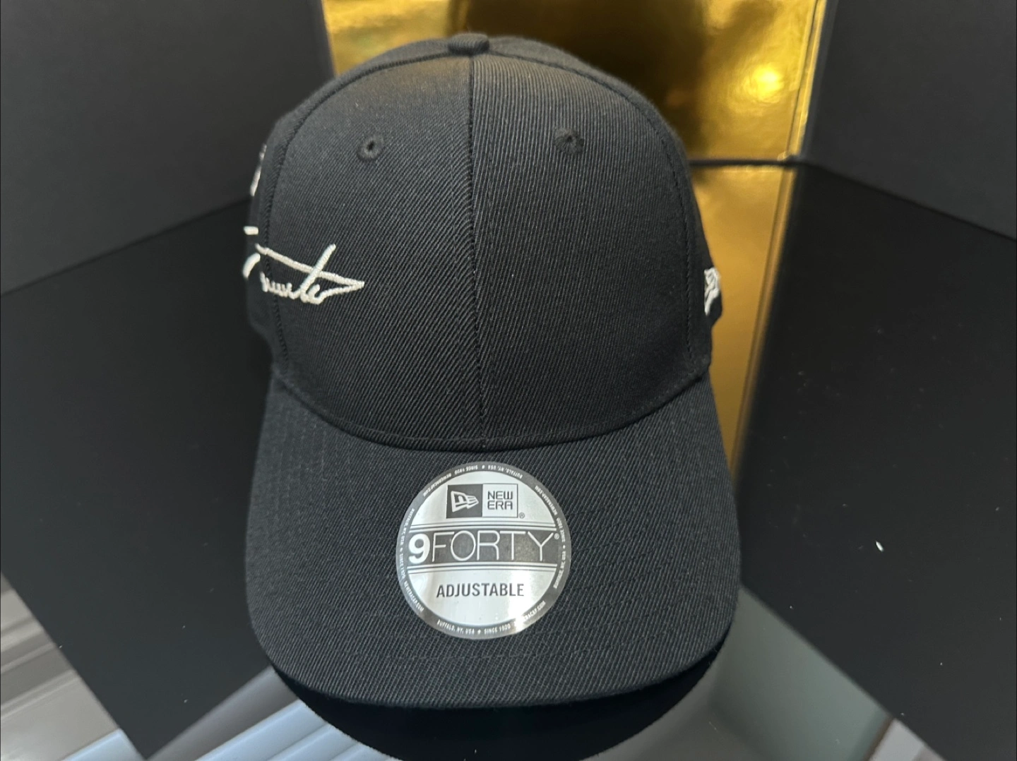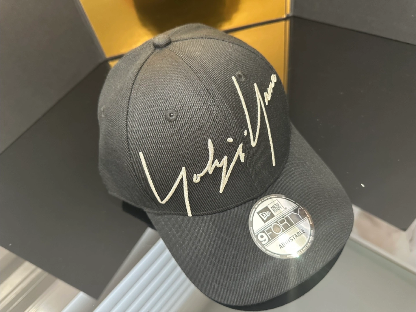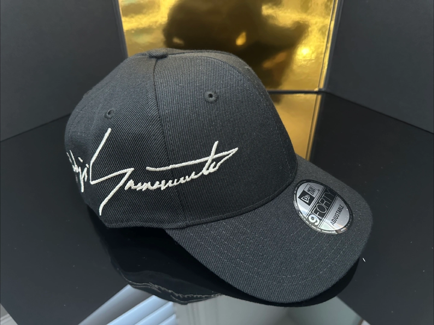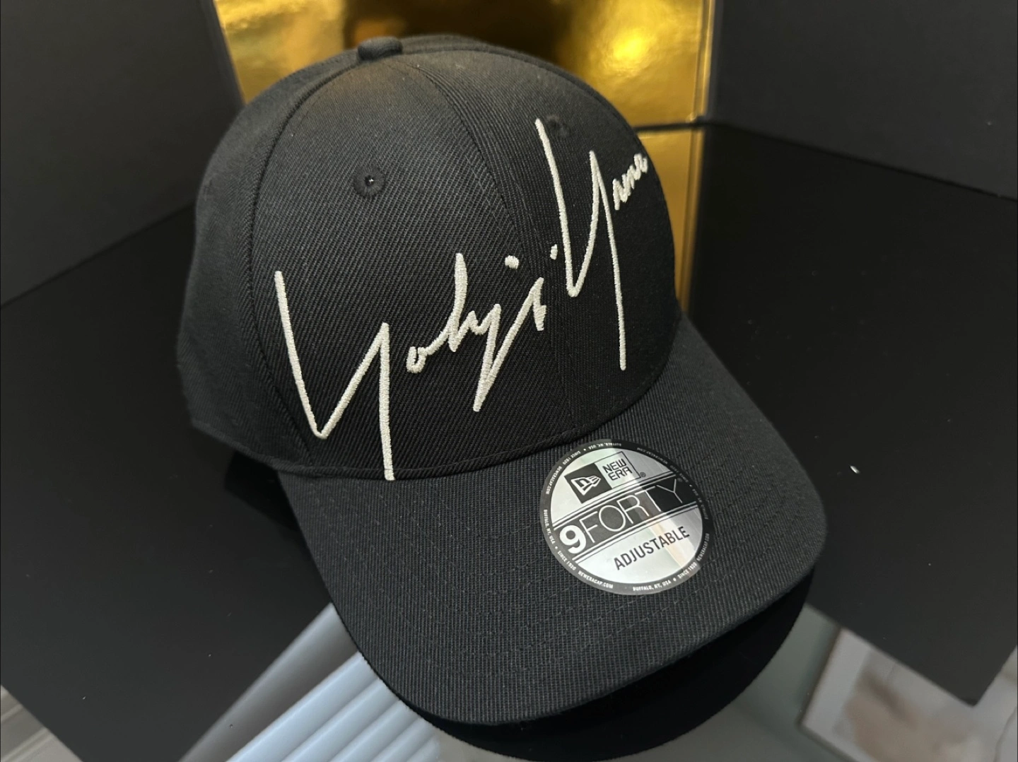 Selling a Yohji Yamamoto x New Era 9FORTY adjustable cap in black. It's in great condition and ready for a new home! The cap features the iconic Yohji Yamamoto signature embroidered on the front. It's a stylish and comfortable accessory for any outfit