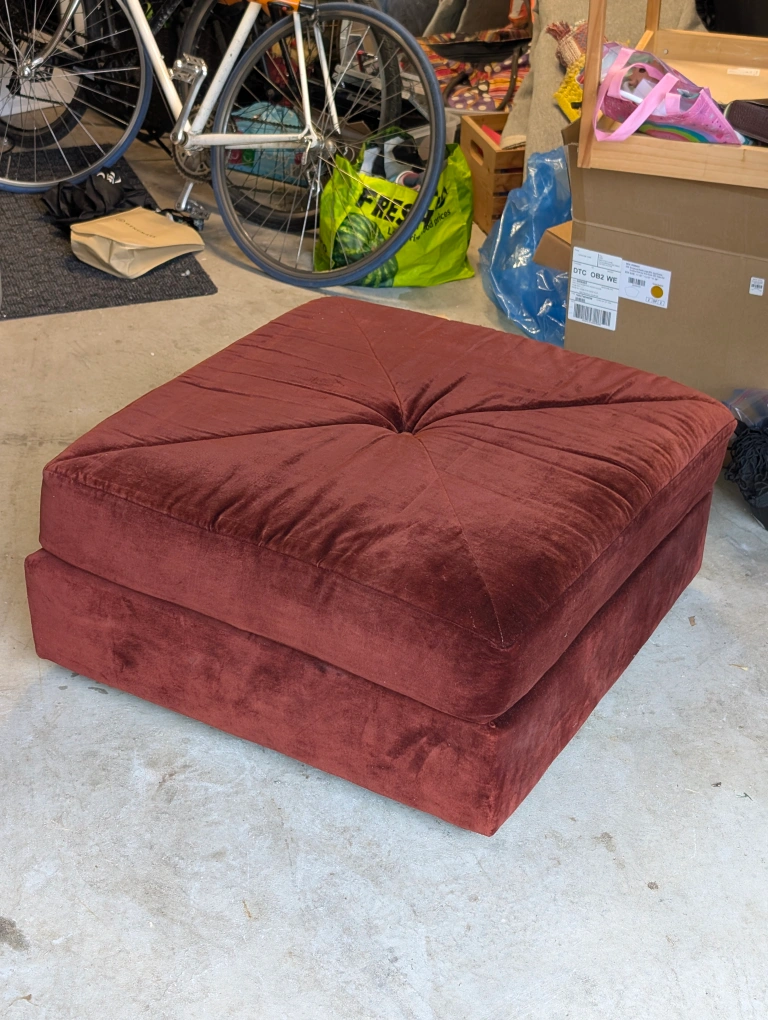 Selling a maroon ottoman. It's in great shape and would be a lovely addition to any living room or bedroom.