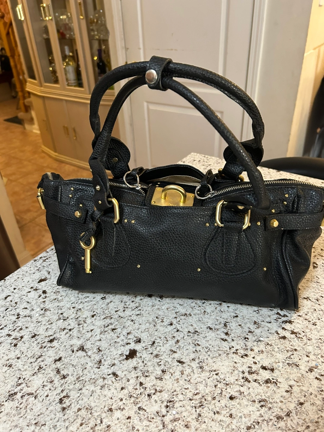 Selling a stylish Chloé handbag in black leather. It's a beautiful piece that's sure to add a touch of elegance to any outfit. Feel free to ask if you have any questions!