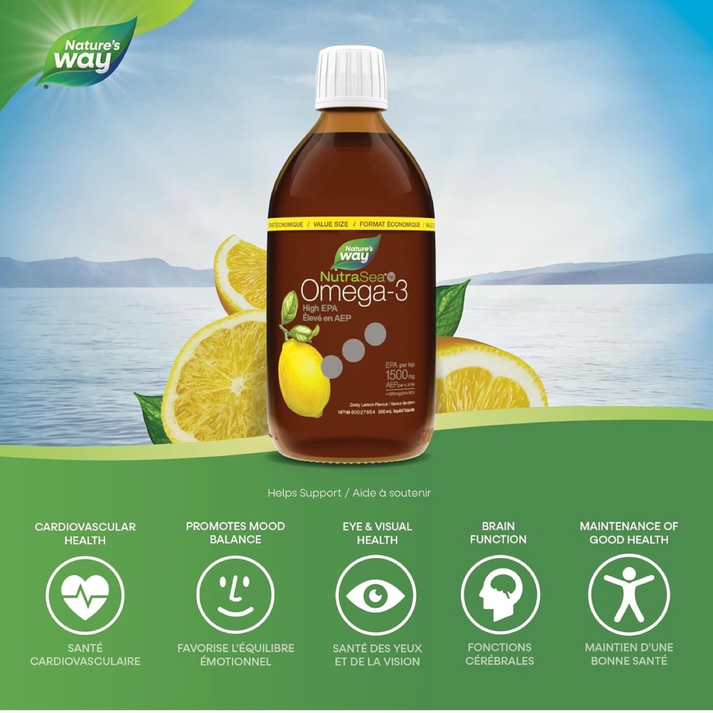OMEGA-3 LIQUID SUPPLEMENT: Pure, great tasting and easy to take, NutraSea Omega-3 liquid provides 1250 mg of EPA & DHA in an easy to absorb formula with a clean, light taste and no fishy burp-back.