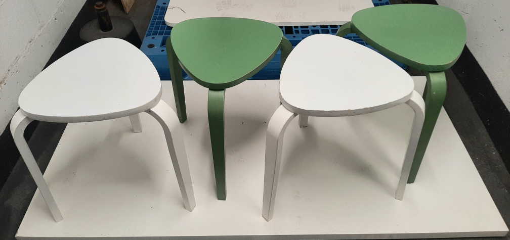 I'm selling these IKEA Kyrre stools! They're perfect as a small seat or side table. I have two in white and two in green. They're in great condition and ready for a new home