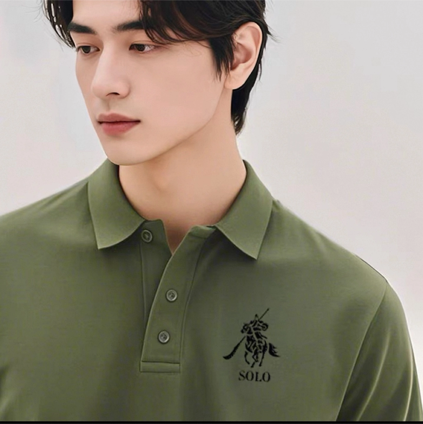 A stylish SOLO polo shirt in a nice green colour. It features a unique logo. Perfect for casual wear!