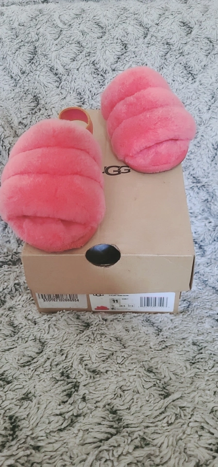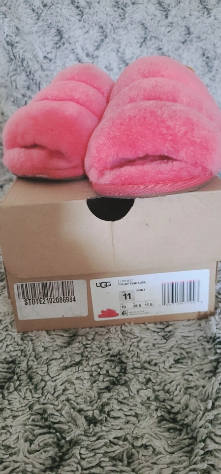 Selling a pair of UGG Tazz Yeah Slides in a vibrant pink colour, size 11(Toddler). These slides are in excellent condition and come with the original box! Perfect for adding a pop of colour to your wardrobe and keeping your feet comfy.