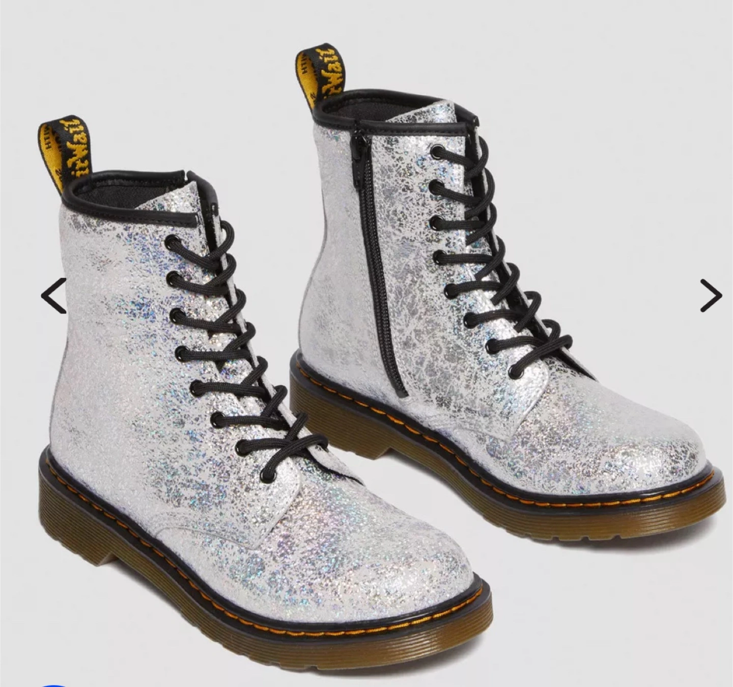 Selling a pair of Dr. Martens 1460 Y boots in a fun silver glitter finish! They're a US size 7 W 6M. These boots are brand new and in excellent condition.