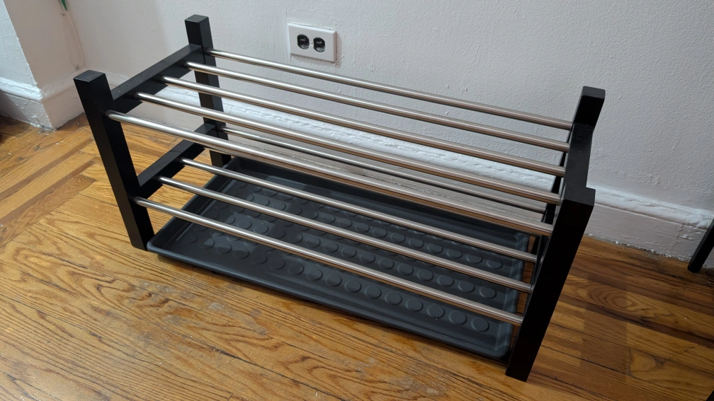 I'm selling a sturdy black metal shoe rack! It's the Tjusig model from Ikea. It is made of black wood with metal bars. A grey tray to collect water/mud tray is included. Retails for 30+ USD. I had it for just a year and it has no signs of use. Pickup in Greenwich Village.