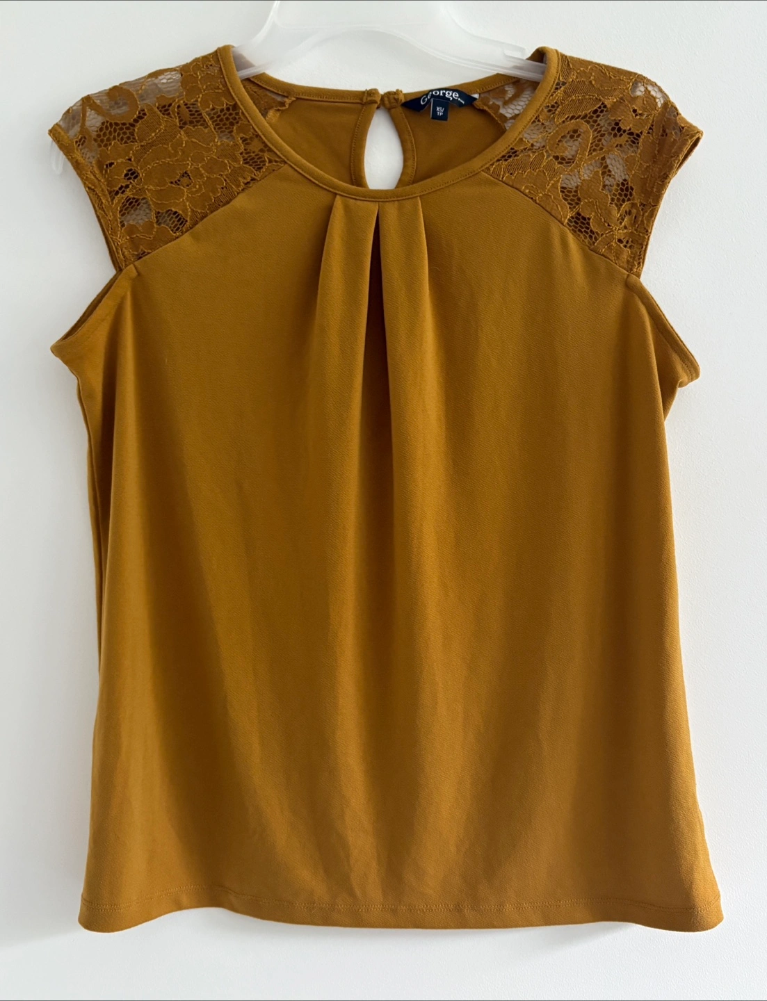244This stylish George top features beautiful lace detailing on the shoulders. It's a size small and in great condition. The unique design adds a touch of elegance to any outfit! From no smoking/ no pet home.