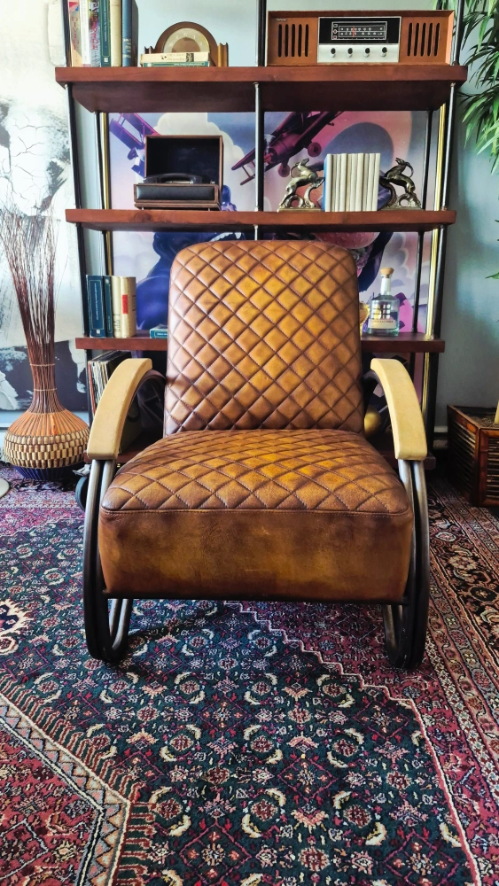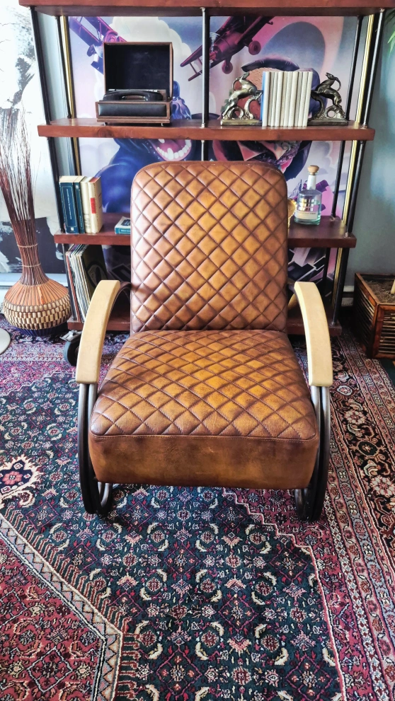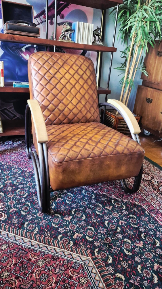 99Selling an industrial style tan leather armchair with a unique diamond quilted design! It has a distinctive metal frame with wooden armrests. It is in great condition and would be a great addition to any room! Dimensions: 27"(w) x 36"(d) x 34.5"(h), the seat height is 16". Pick up in downtown Vancouver or delivery may be arranged for a reasonable fee. Priority is given to those who are able to pick up. For similar items, search vanvaluevintage in the Marketplace search bar to receive a bundle deal on multiple items' purchases. Follow us on Instagram to enjoy an exclusive discount on select furniture items:https://www.instagram.com/vanvaluevintage Tags: mcm mid century modern furniture sixties walnut rosewood teak tufted lounge chair reading chair tv film set dec rental retro vintage antique 1910s 1920s 1930s 1940s 1950s 1960s 1970s sixties leather Industrial tan hide saddle quilter accent chair arm chair club restoration Hardware loft steel metal iron cb2 eq3 west elm pottery barn crate and barrel structube article urban barn moes Scandesign rove concept living room bedroom office