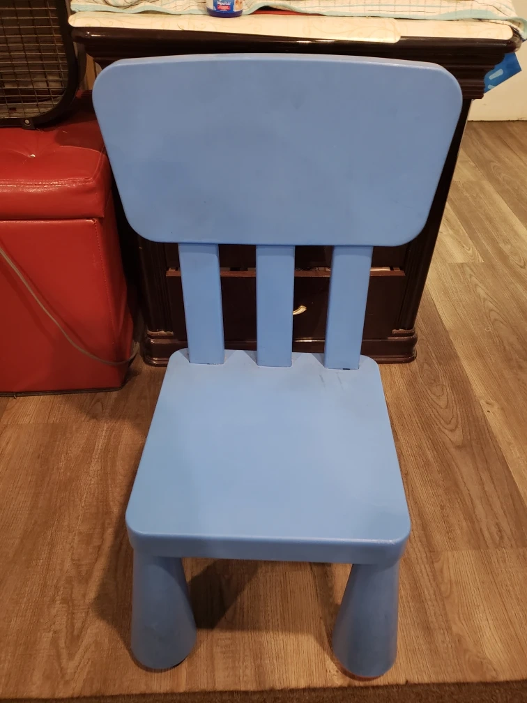 Selling a light blue IKEA Mammut kids chair! It's in great shape and perfect for little ones. This chair is sturdy and easy to clean, making it ideal for playrooms or kids' bedrooms. Pick up at Jane and Finch..