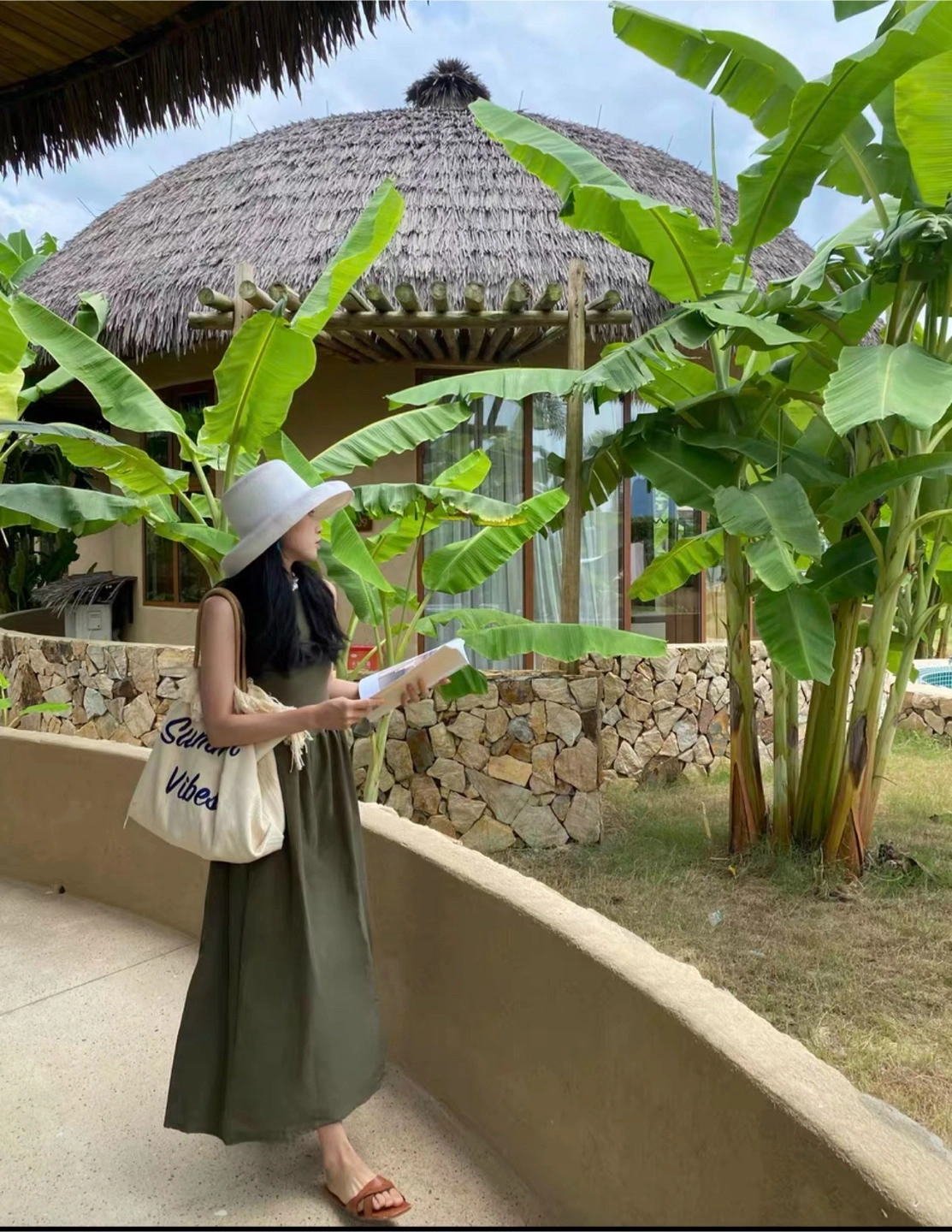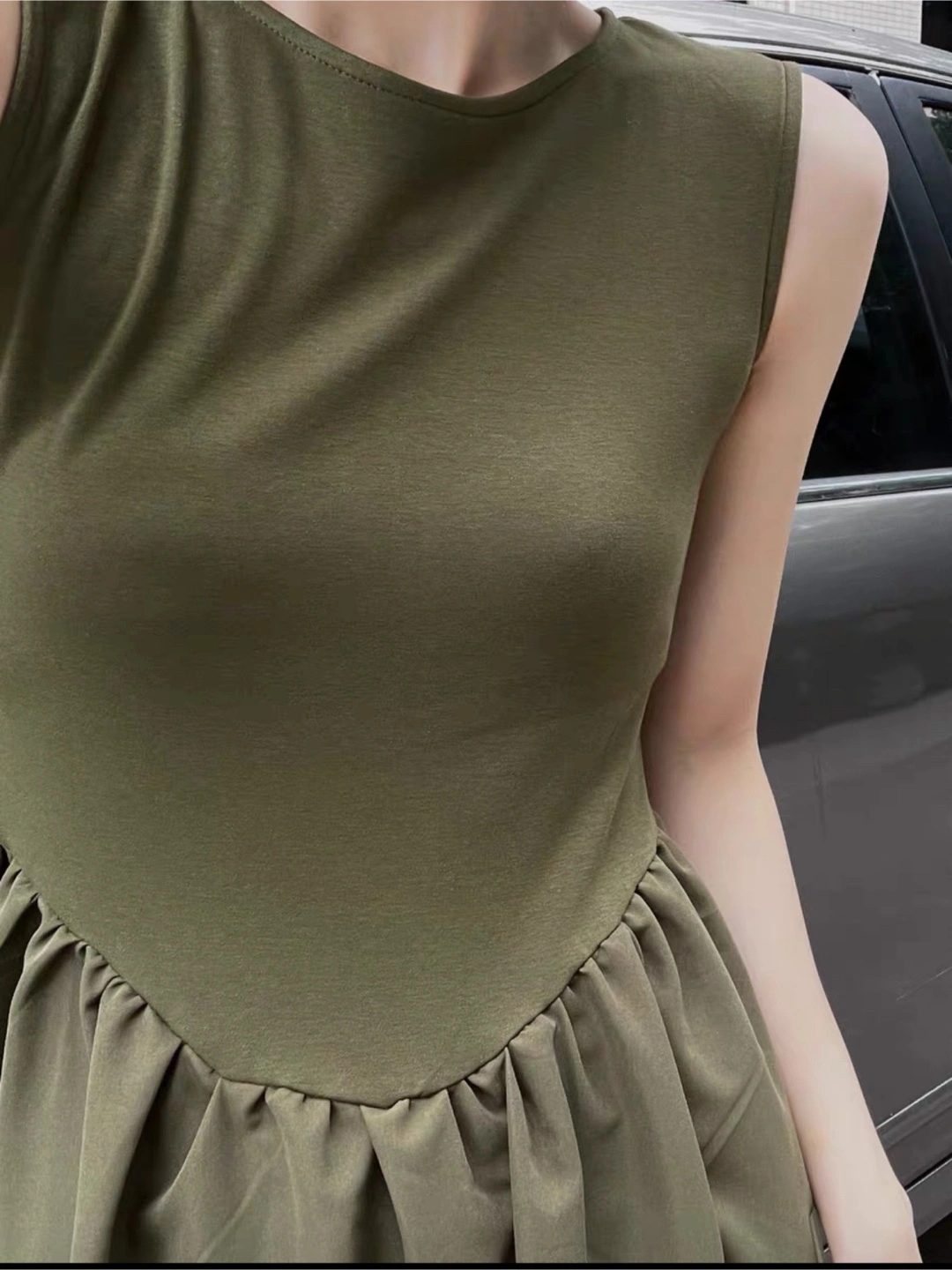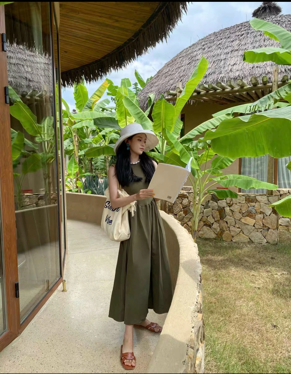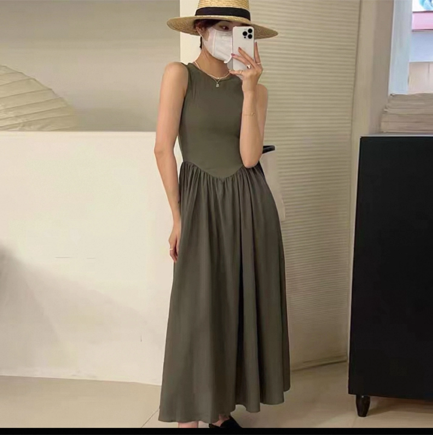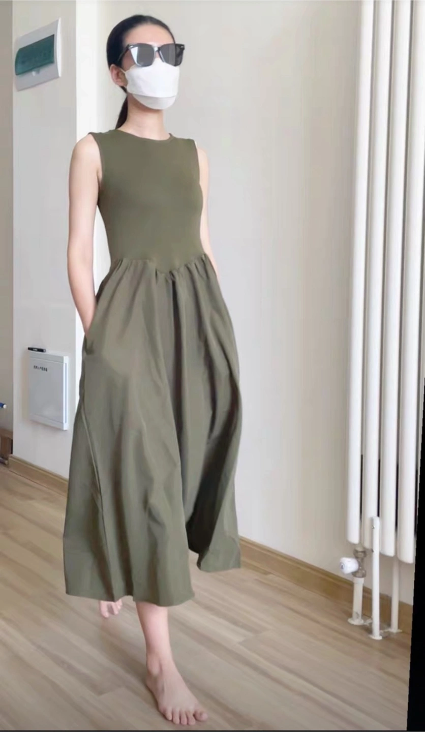 A lovely olive green sleeveless midi dress! Perfect for a casual day out or dressing up for a special occasion. It appears to be in great condition and ready for a new home