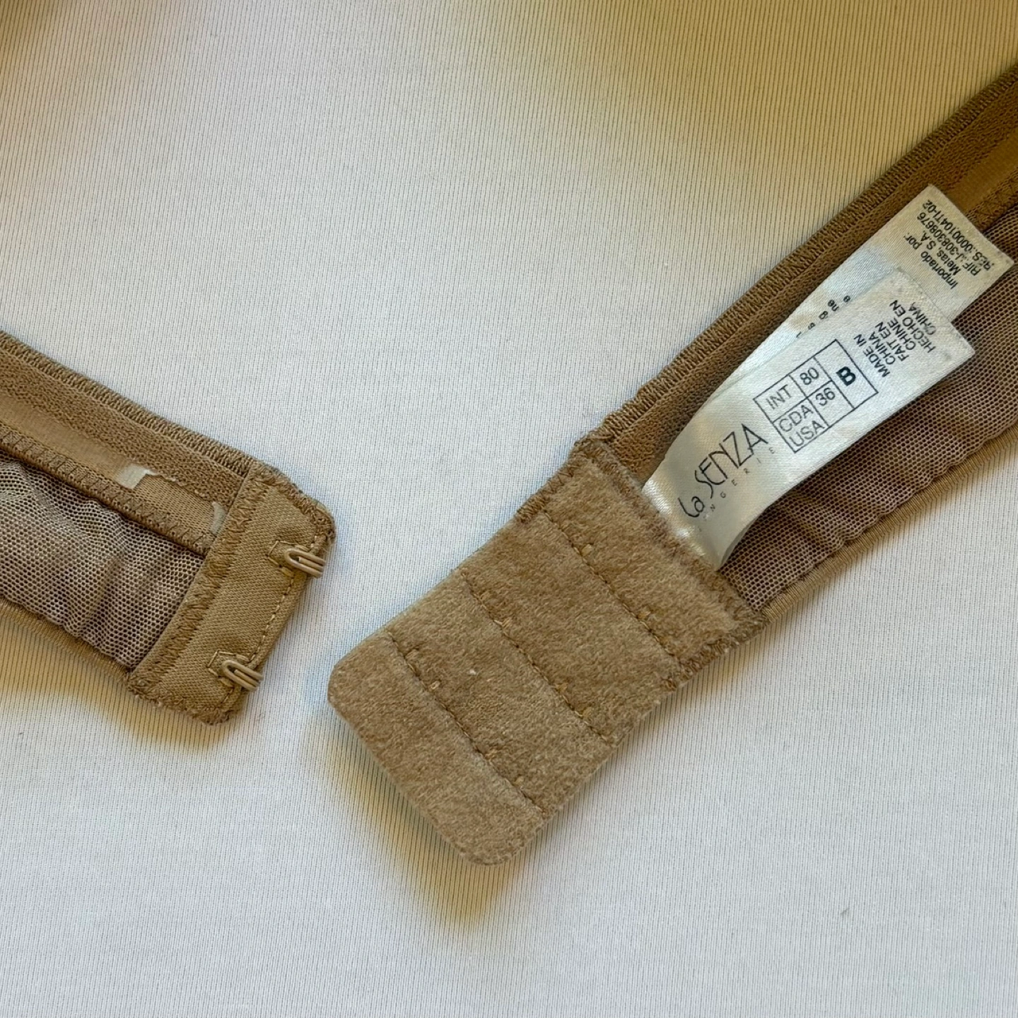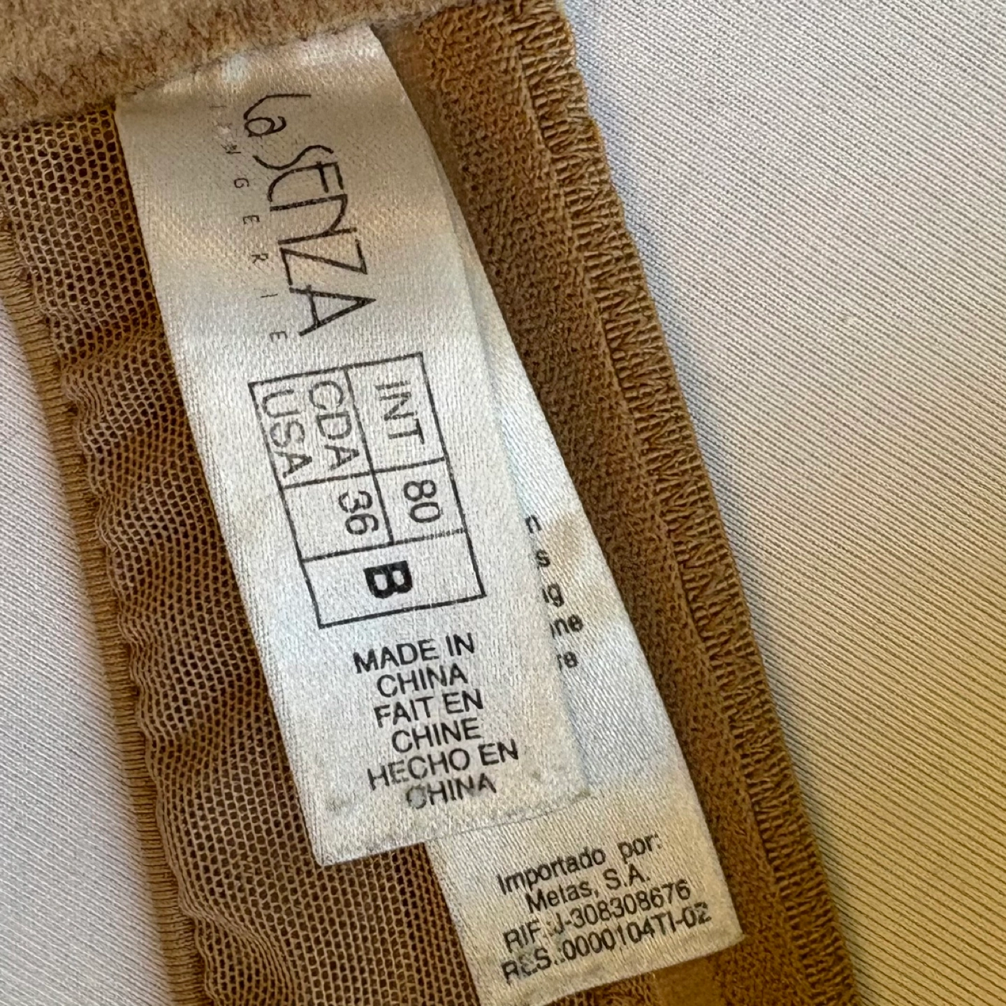 This is a La Senza nude strapless bra, size 36B, designed with a silicone anti-slip band to ensure it stays in place. It's ready to offer support and comfort!