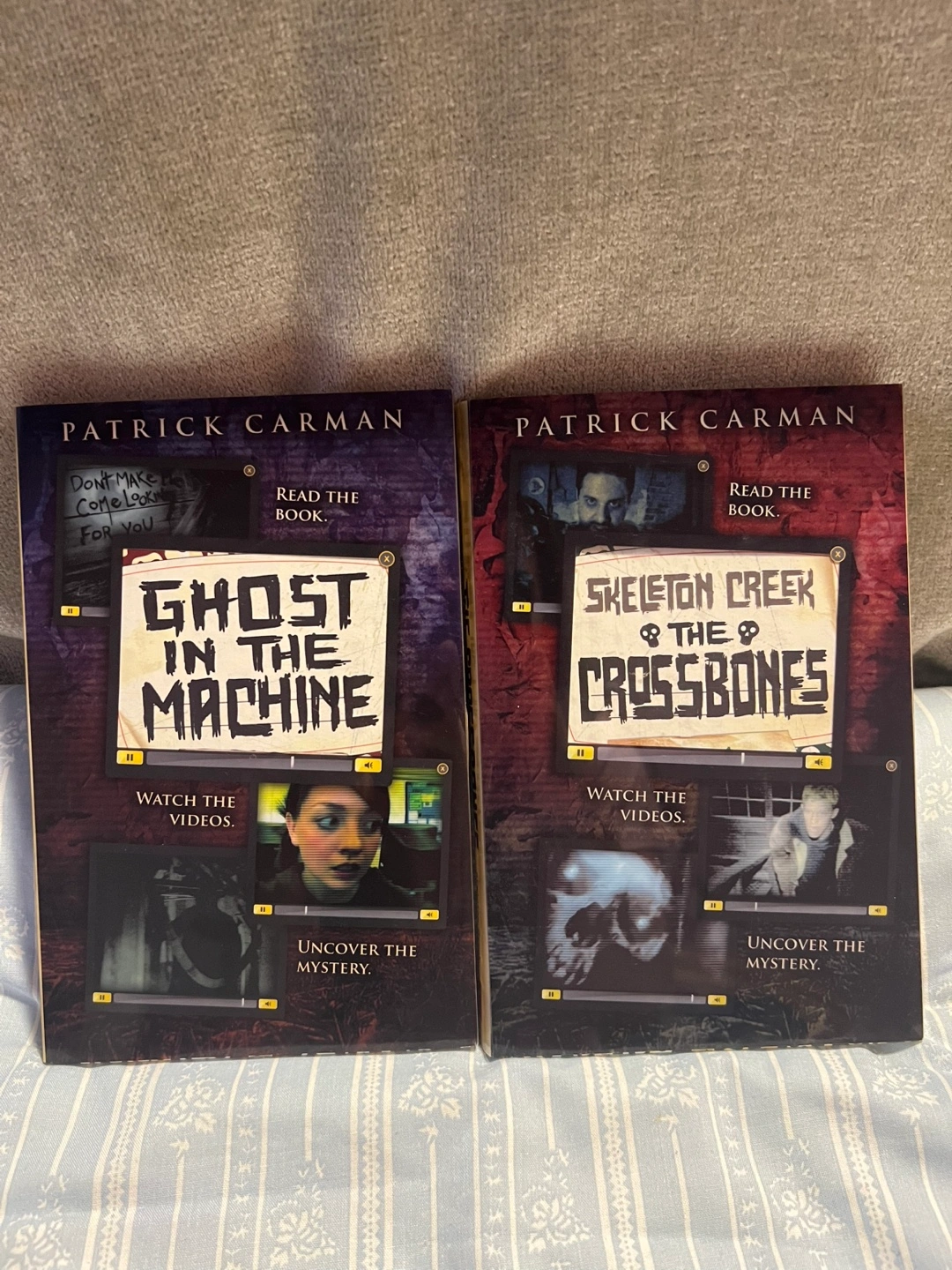 Selling two books from the Skeleton Creek series by Patrick Carman: Skeleton Creek and the Crossbones, and Ghost in the Machine! Great reads for mystery and suspense lovers