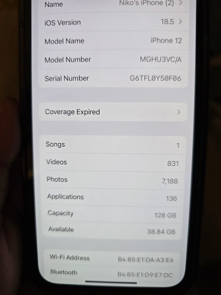 Selling an Apple iPhone 12 in black with 128GB of storage. It's unlocked and ready for a new owner. The battery health is at 85%.