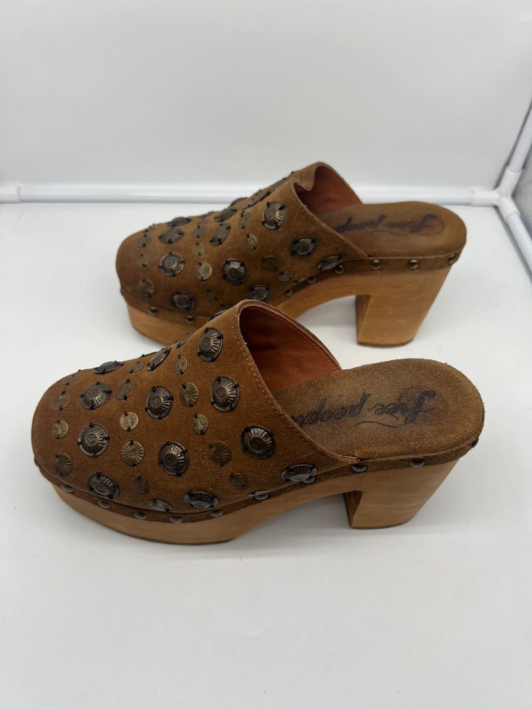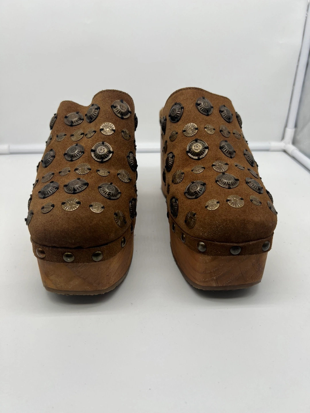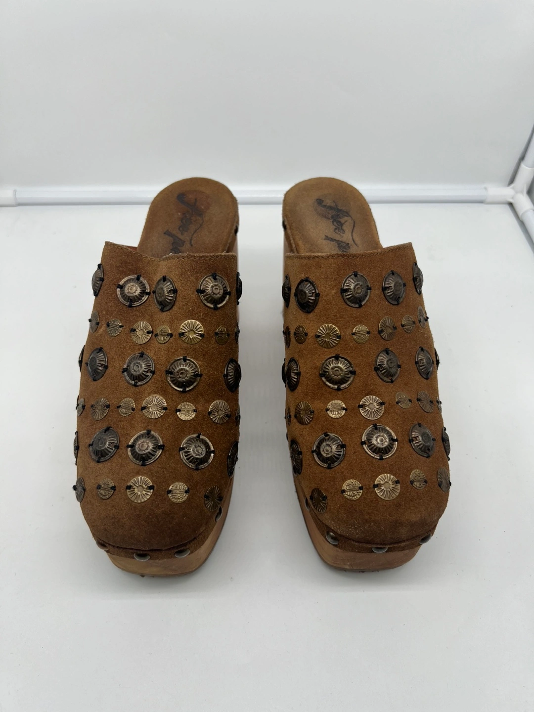 Free People Claudia Brown Suede Studded Wooden Clogs sz 37