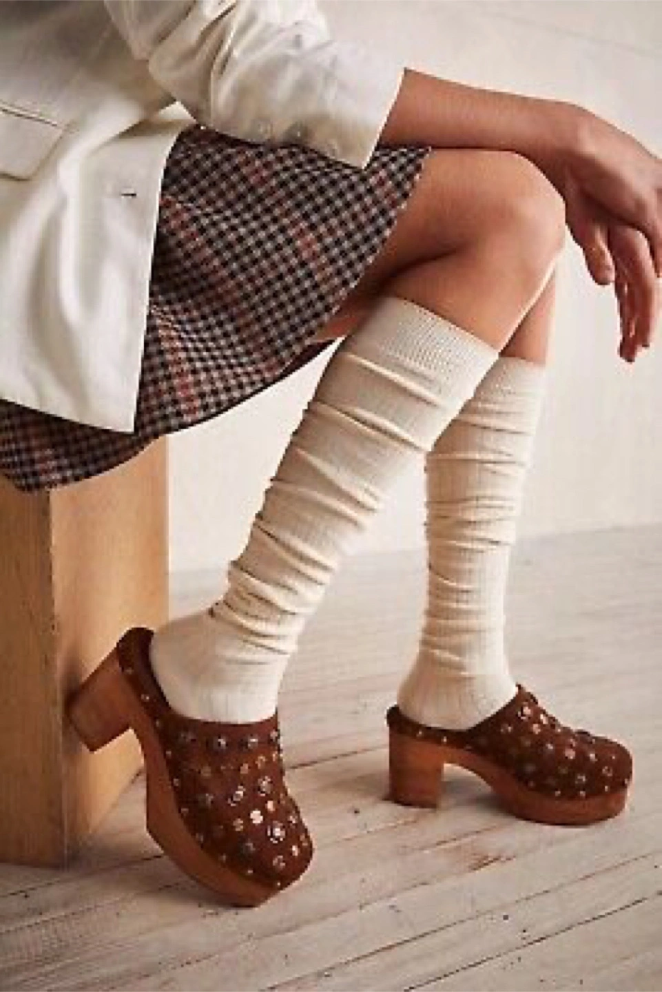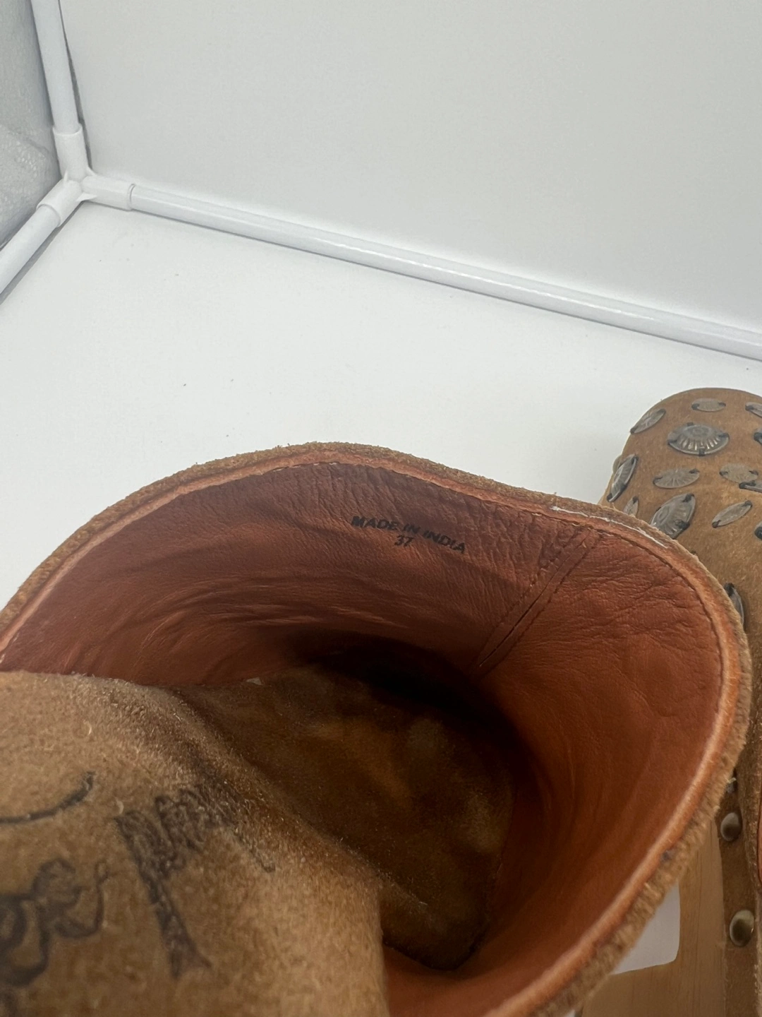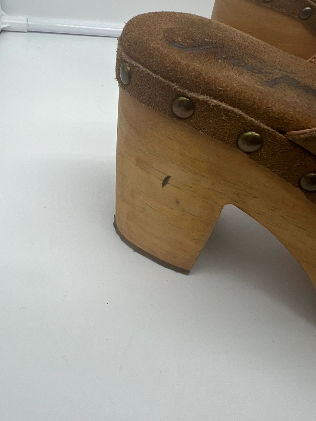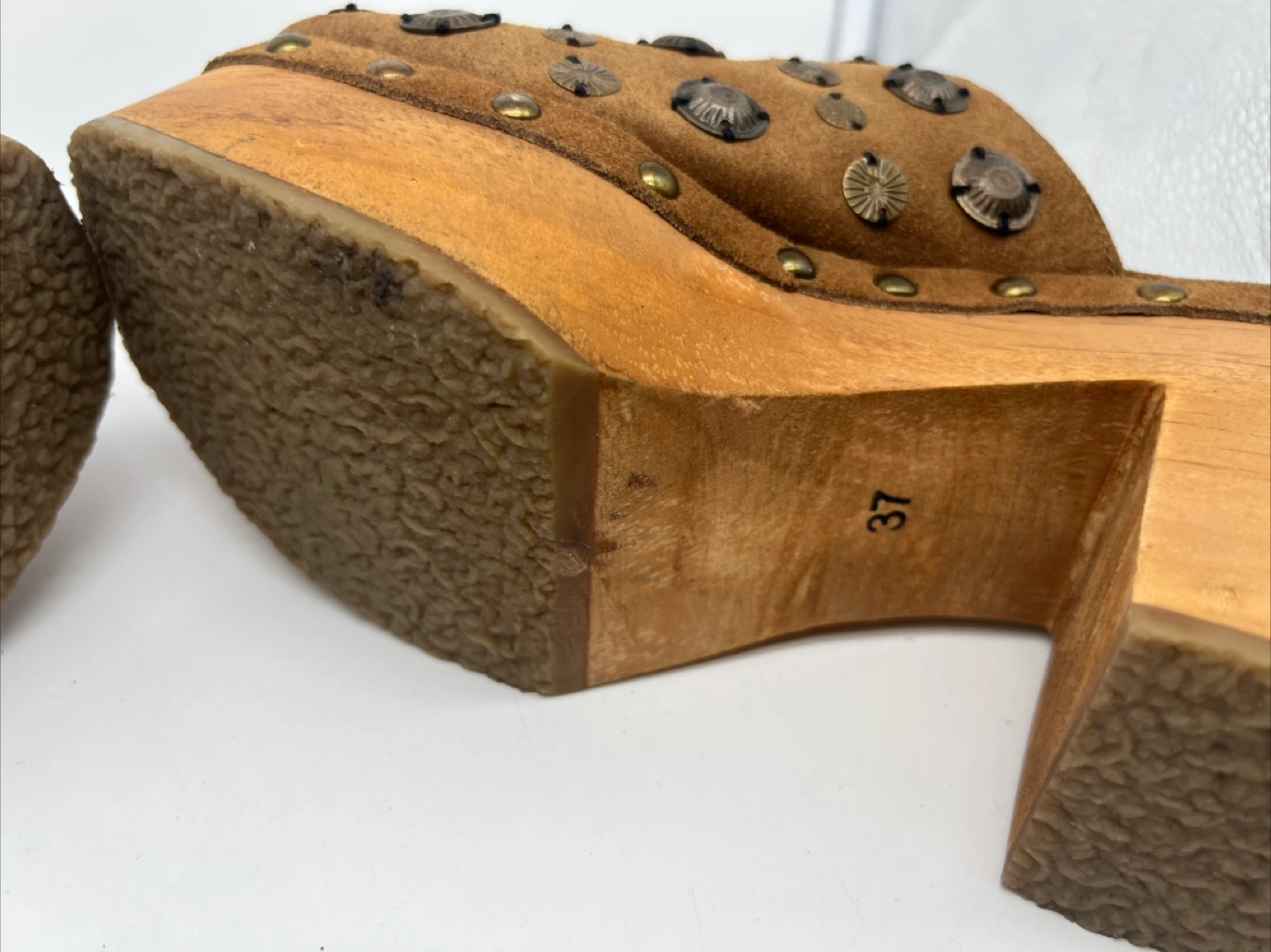 Free People Claudia Brown Suede Studded Wooden Clogs sz 37