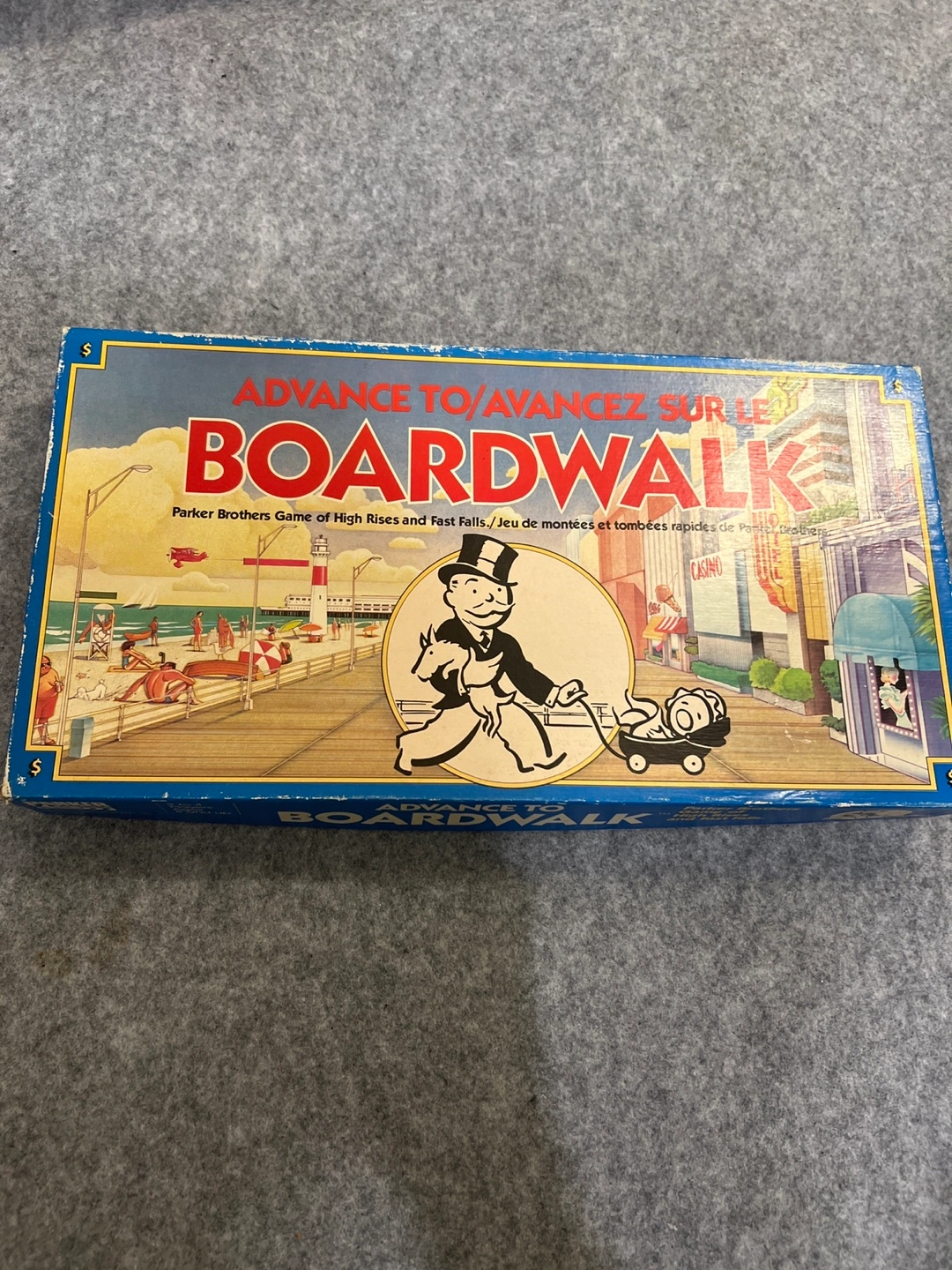 Selling a vintage Boardwalk board game by It's in great shape and includes all the pieces, hotels, and dice. The box is also included, making it a complete set for your next game night. Please Note :: all game pieces and tokens still sealed in original packaging