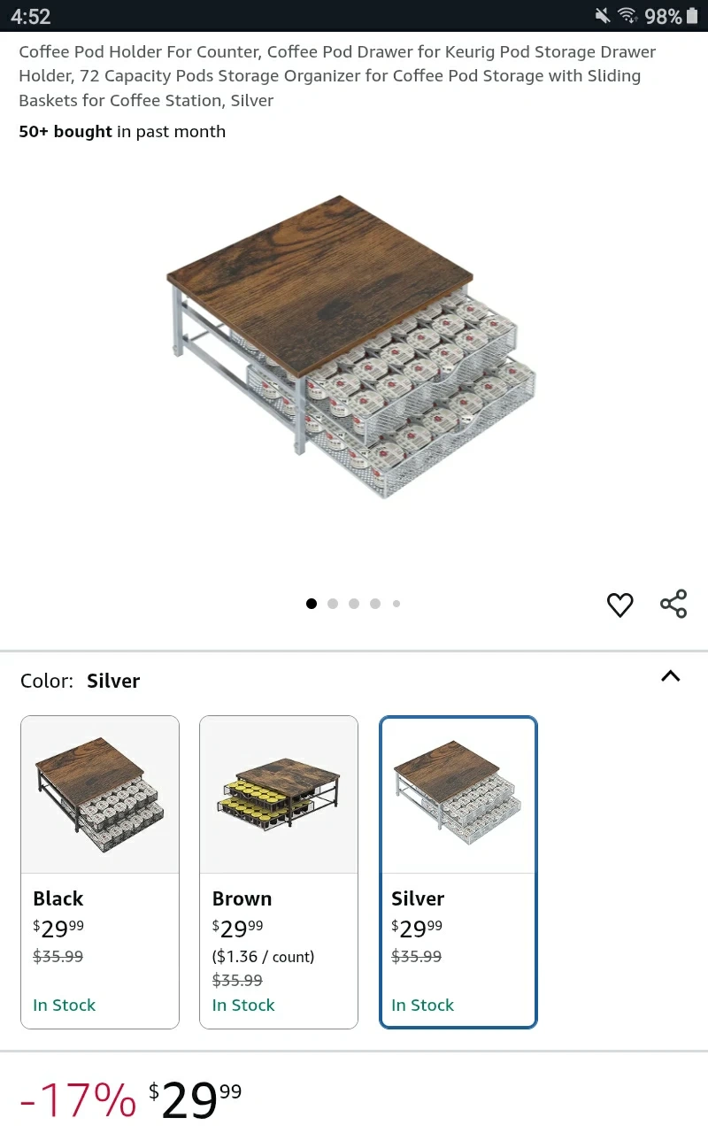 Keurig Coffee ☕ Pod Metal Mesh drawer organizer! It's perfect for your Coffee Pods. It has a black top and silver drawers. 😀 ➡️ Holds up to 72 ☕ Pods ⬅️ Hundreds of items are Available 🛍️ Click on My Scooter Picture Below 👇 Scroll Down ⬇️ Click on the > Button 👍 Location of Item Pickup Below 👇 Click on Map 🗺️ ➡️ I am Available 2 - 8 pm only ⬅️ Day & Time for Meetup is Required 🗓️ 🕑 ➡️ Delivery not Available ⬅️ I'm ♿ No 🚫 VehicleExcellent Condition 👍