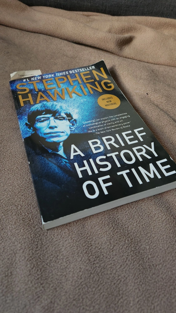 Selling a copy of Stephen Hawking's "A Brief History of Time"! It's a New York Times bestseller that delves into the complexities of cosmological physics. Includes new material