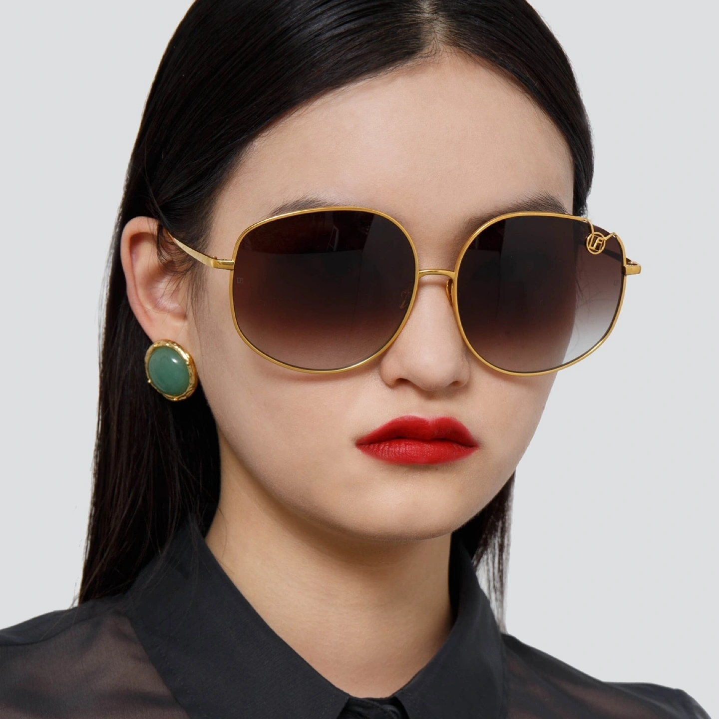 Linda Farrow Marisa 22k Gold Plated Oversized Sunglasses