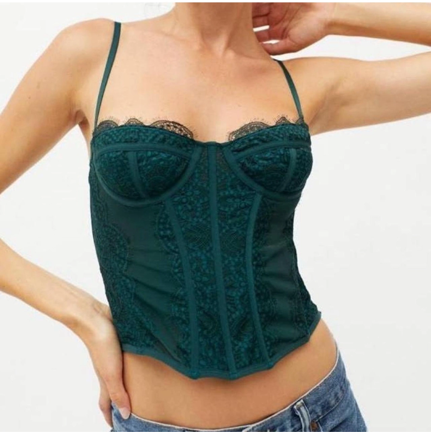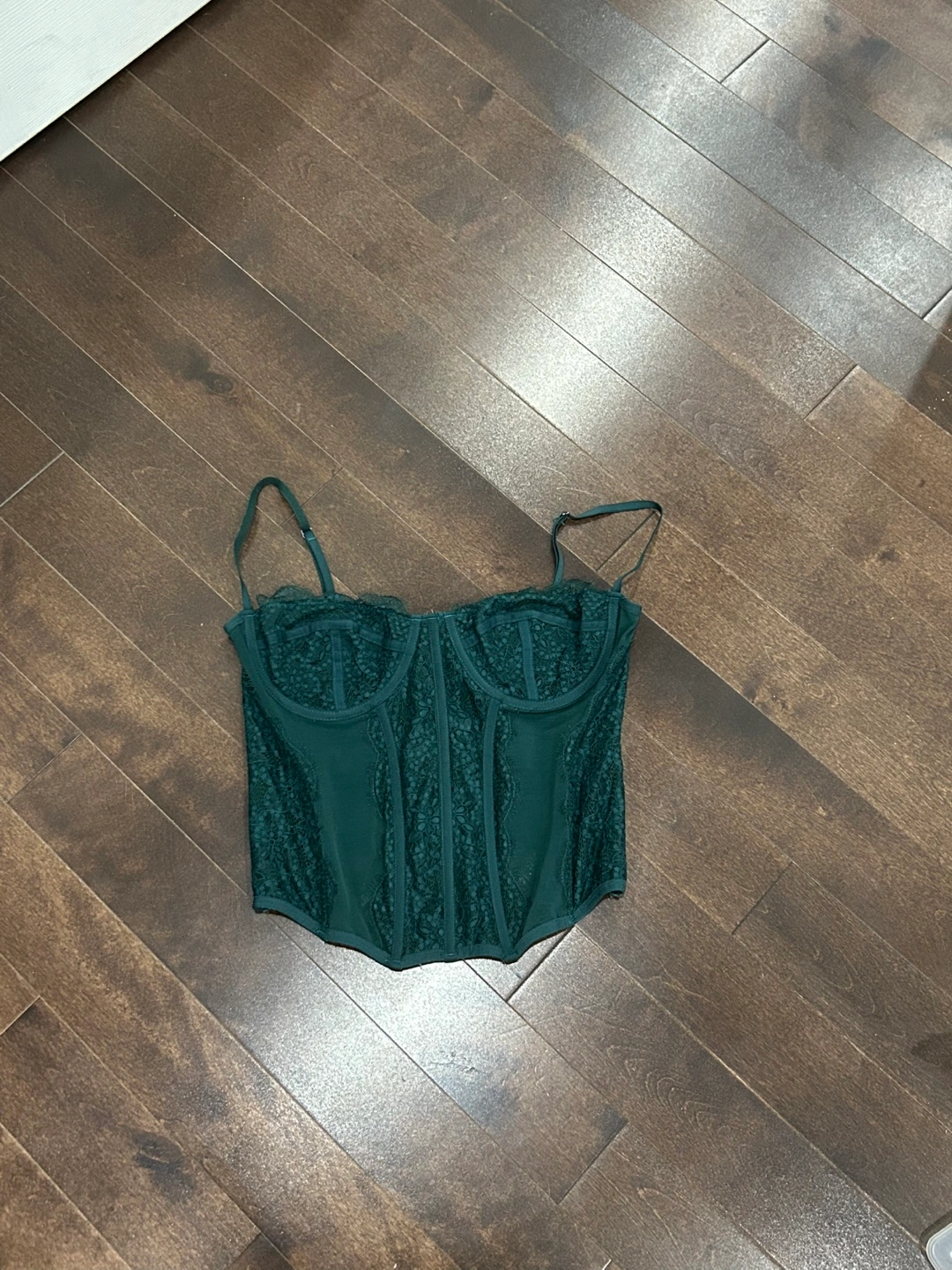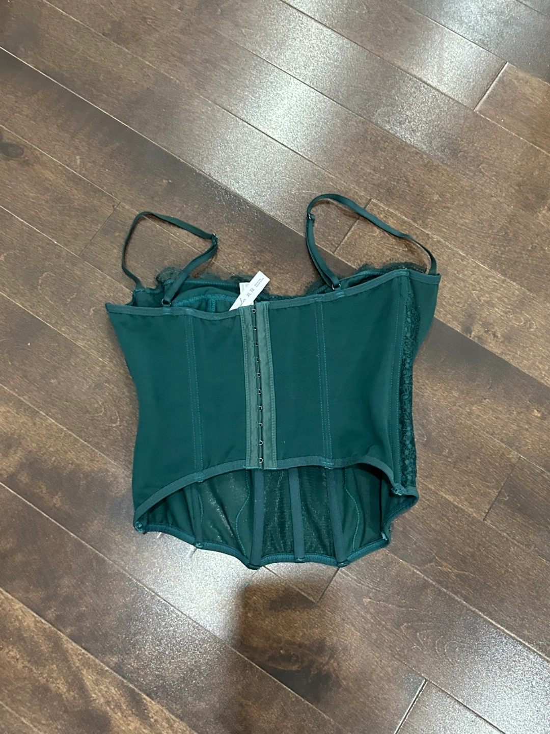 Dark green bustier corset top from Urban Outfitters. Classic Modern love style in a size XL. Not the best for big chests. But if you’re smaller than an xl with up to C/D cups, this may work as it’s adjustable. excellent condition. worn once.