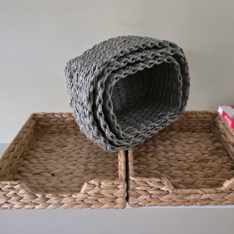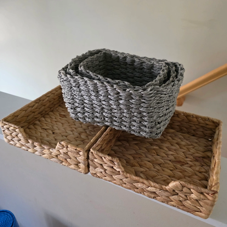 Selling a set of three woven baskets! They're in great shape and would be perfect for organizing or adding a touch of texture to your space. They are multifunctional.