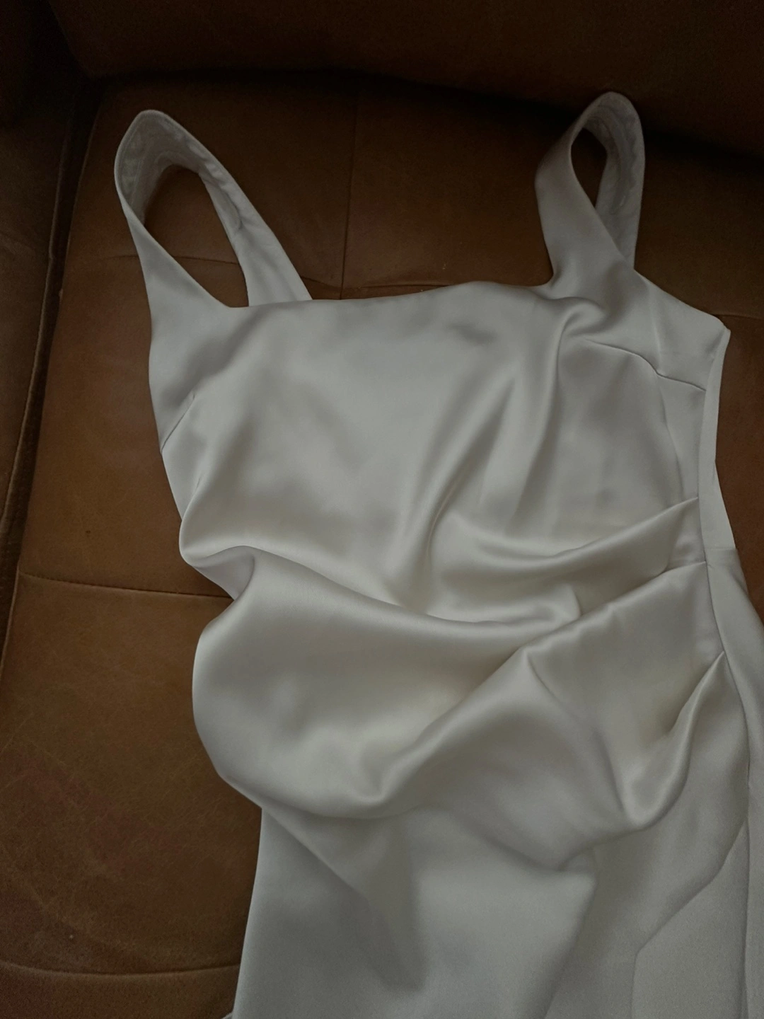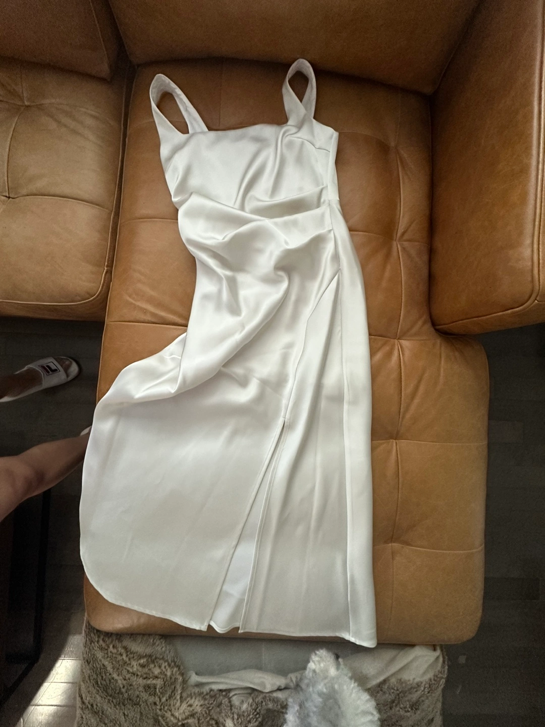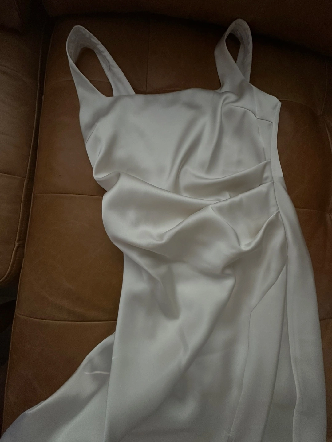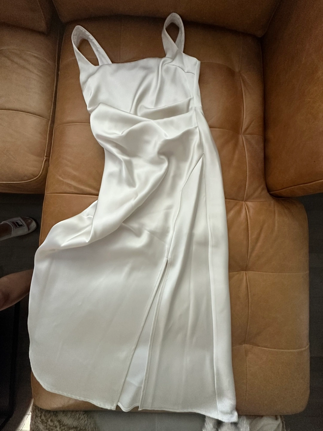 Selling a beautiful white slip dress! It's in great condition and ready for a new home. The dress has a sleek and elegant design, perfect for any special occasion or a night out