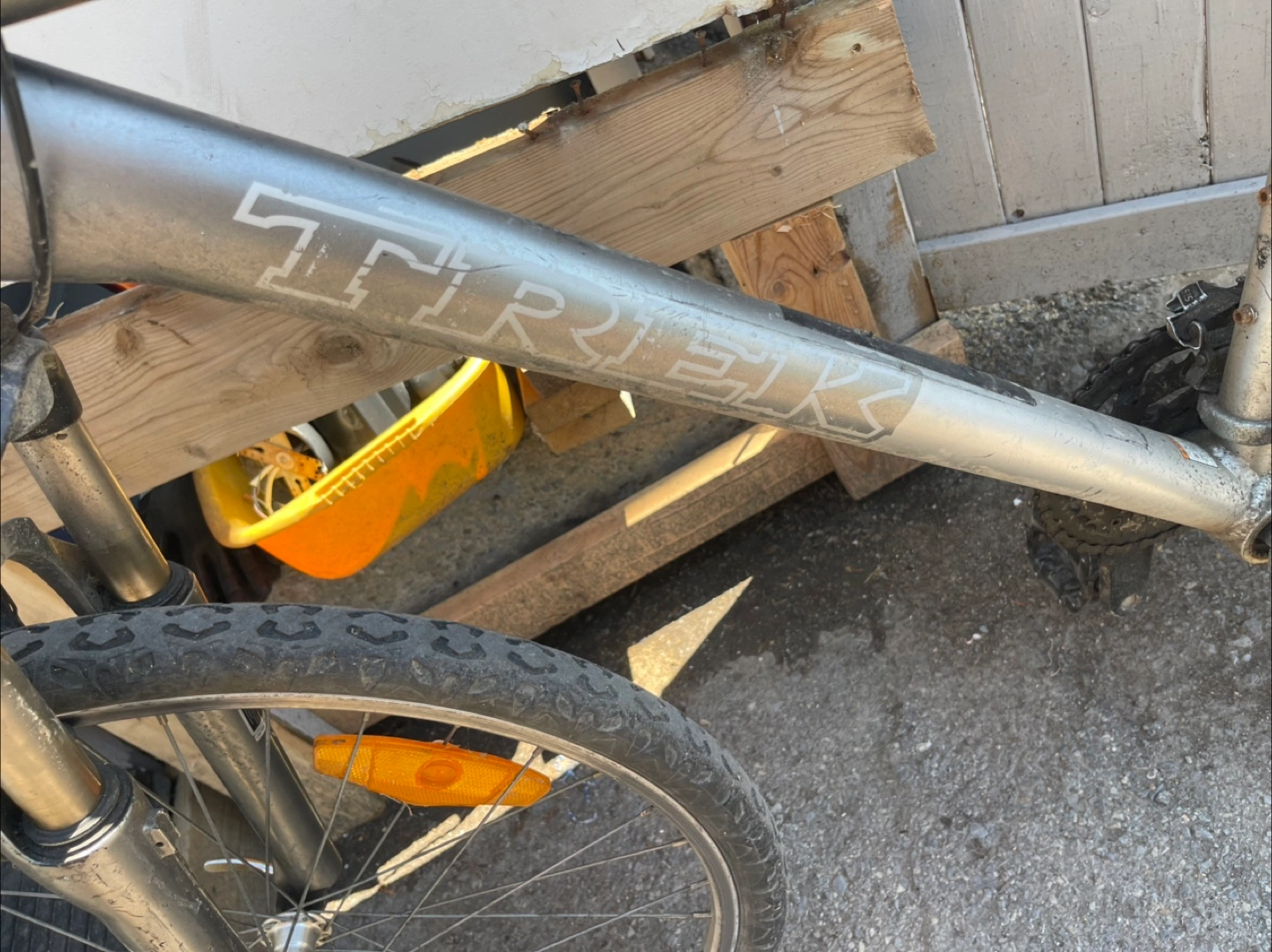 Selling a Trek mountain bike. It's silver and has some signs of use, but it's still a great bike for hitting the trails!