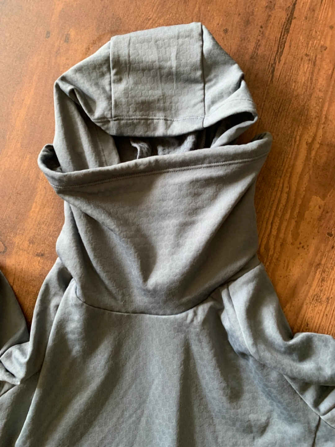 Brand new. Made with moisture-wicking fabric, this Base Thermal Hoodie features a balaclava face guard with an adjustable shock cord that can transform into a cowl neck, providing maximum protection against the elements. The hi-low-shaped bottom hem ensures good hip coverage, and the hood comes with a ponytail opening for added convenience. The hoodie also includes a zippered pocket for storage and sleeve thumbhole mitten cuffs with watch access. Reflectivity elements ensure visibility during low-light conditions.