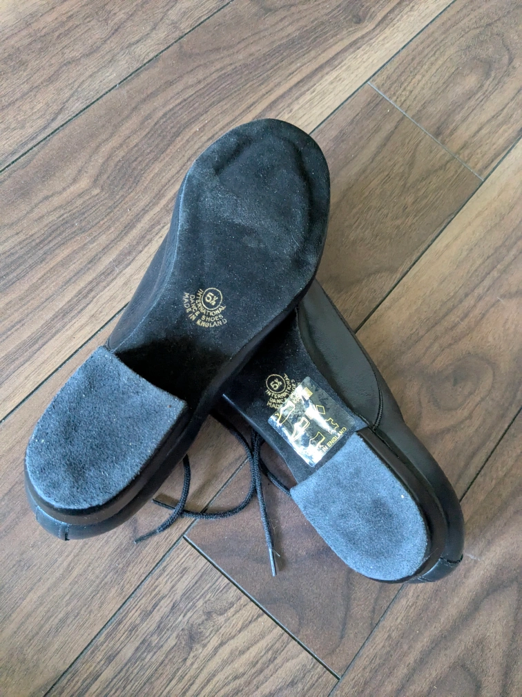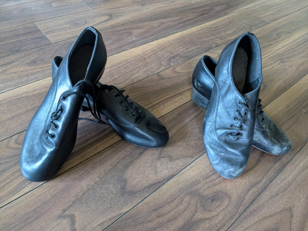 Selling two pairs of Made in England International Dance Shoes, one brand new ($60) and the other one used ($10, has some scuffs) but in working condition. They are both size 5 1/2. Could be great for dance practice or performance!