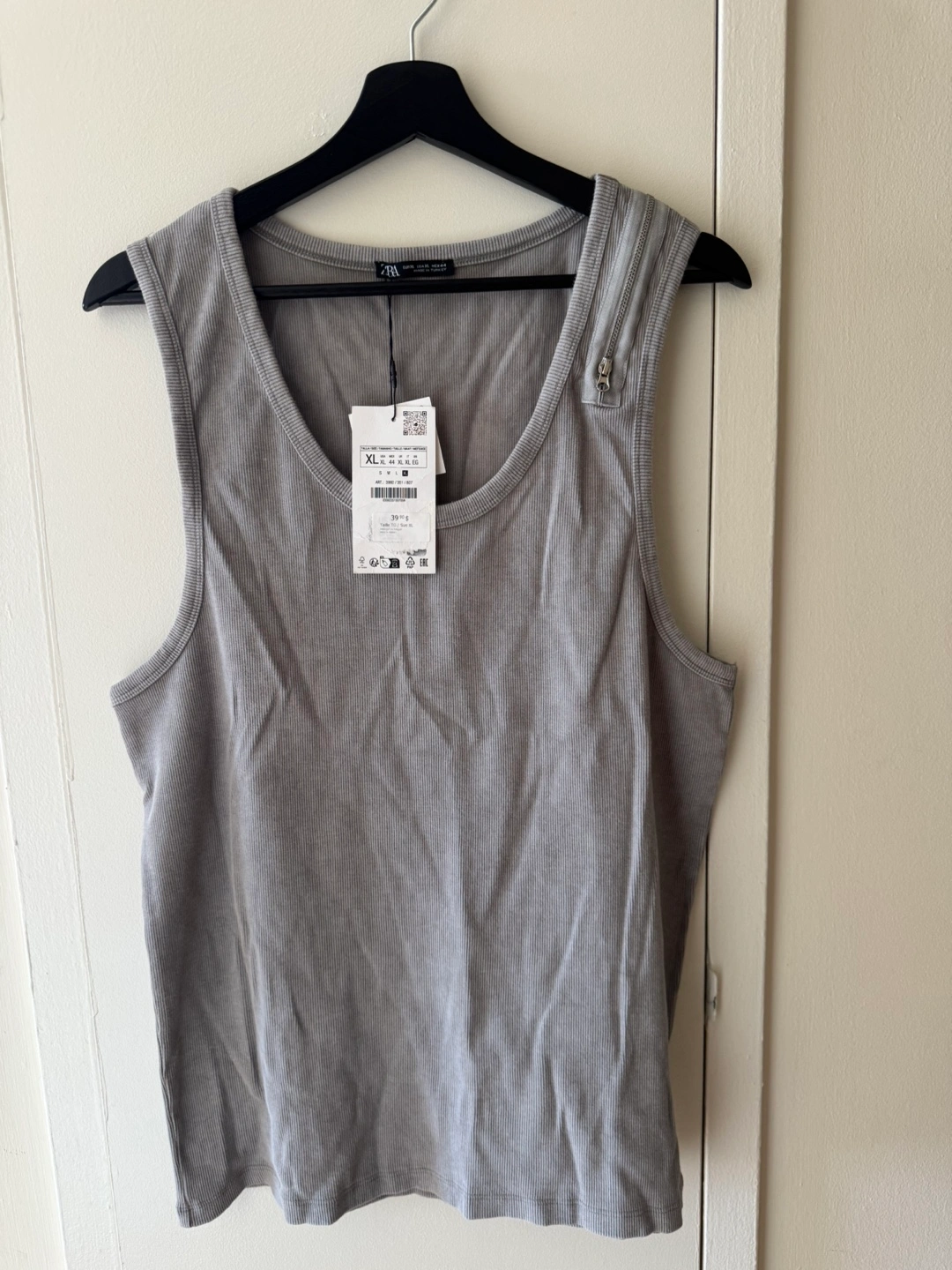 166Zara washed effect tank top in size XL! This ribbed tank features a unique zipper detail on the shoulder. It's in great condition and ready for a new home. Never used, tag attached