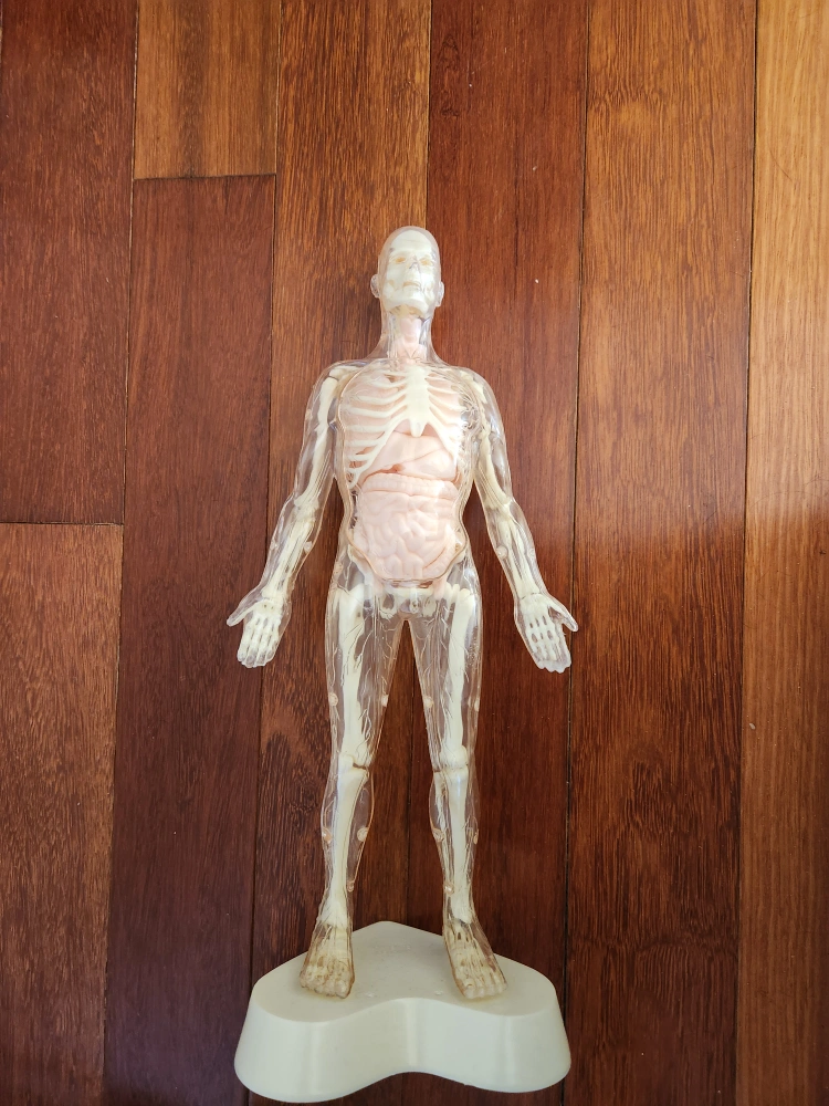 🧡 Here is a vintage transparent anatomical human skeleton model. It is in good condition and would be great for educational purposes or as a unique decorative piece. I also have the original paper instructions of each part.