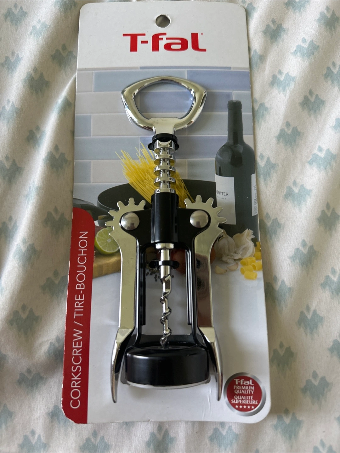Selling a T-fal corkscrew wine opener. This premium quality tool is brand new and ready to help you open your favourite bottle of wine with ease