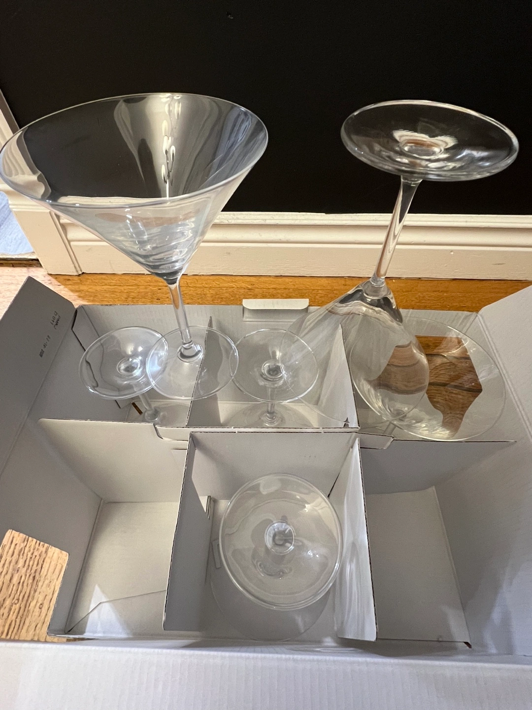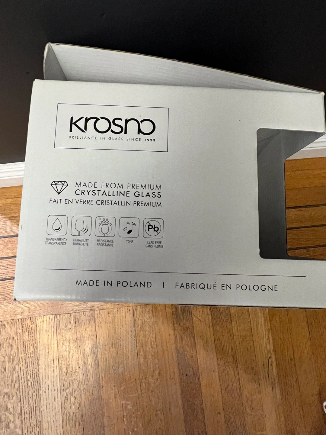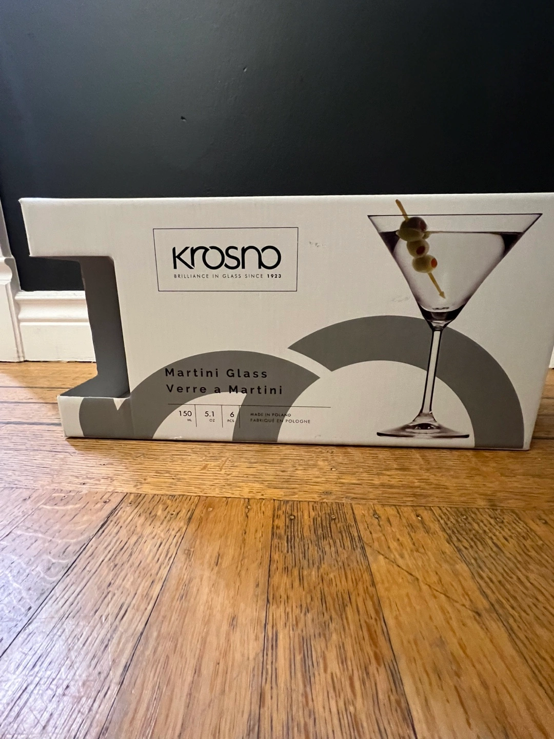 Selling a set of 6 Krosno martini glasses! They are made from premium crystalline glass and are lead-free. Each glass holds 150 ml or 5.1 oz. The glasses are durable and resistant. Made in Poland. Comes with the original box