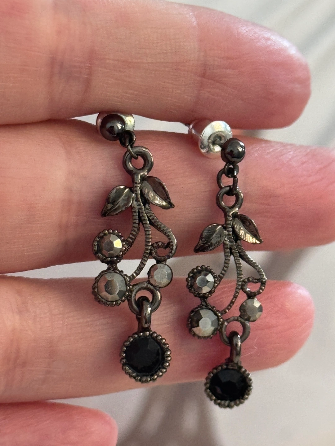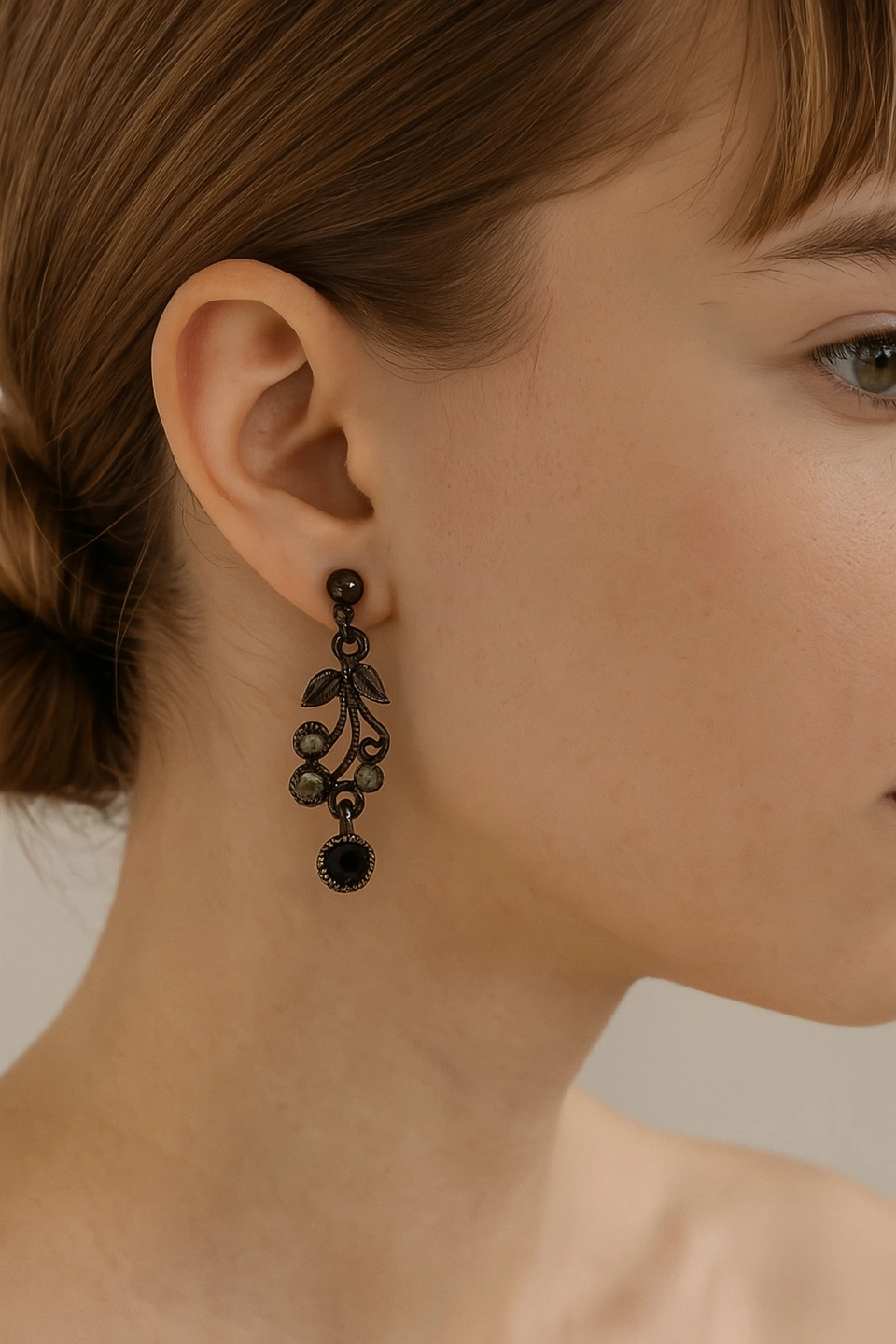 Add a timeless touch to your style with these beautifully crafted dangle earrings. Featuring antique silver vines, delicate leaves, and shiny black stones, they are perfect for evening outings, special occasions, or as a meaningful gift.