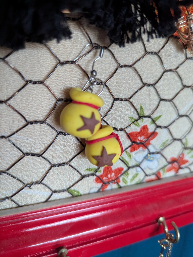 Here's a cute Animal Crossing Bell Bag charm! It's got a star on it and a little red tie, perfect for any fan of the game. earrings are hypoallergenic.