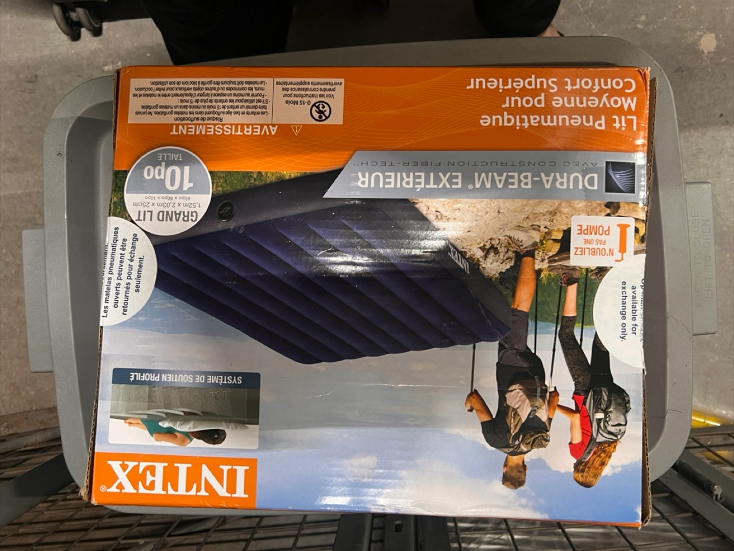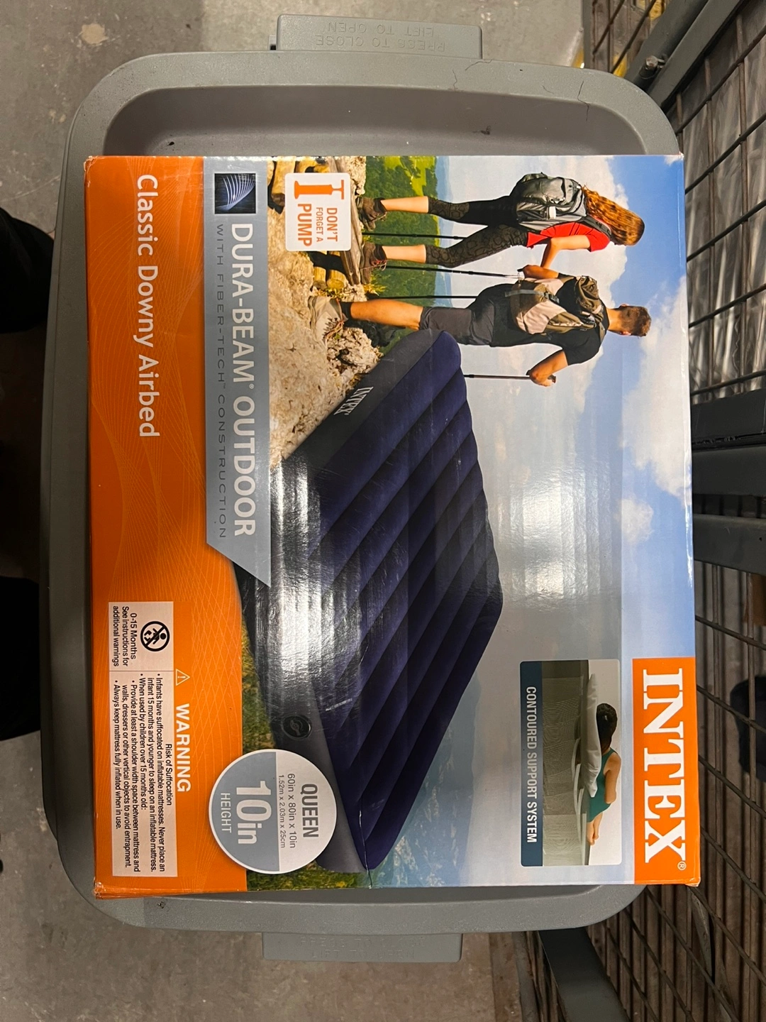 632Selling a brand new Intex Dura-Beam Outdoor Queen Airbed! It's a classic downy airbed with fiber-tech construction + and electric pump. - Queen size: 60in x 80in x 10in (1.52m x 2.03m x 25cm) - Contoured support system - Box included Used once when we moved into our place. If the ad is still up it means itβs still available π π΅ Cash only please. Thanks π¨ Part of our move-out sale β check my other listings for more great finds!