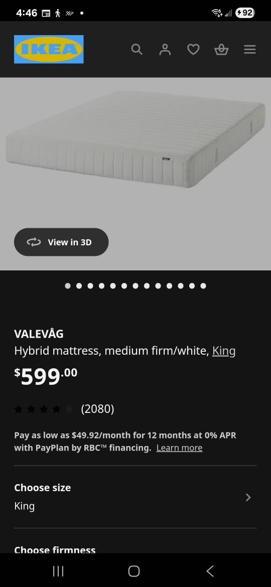 80Selling a brand new IKEA VALEVÅG mattress and mattress pad in firm white, King size! It's still in its original packaging. Retails for $828 at IKEA selling for more than half the price!