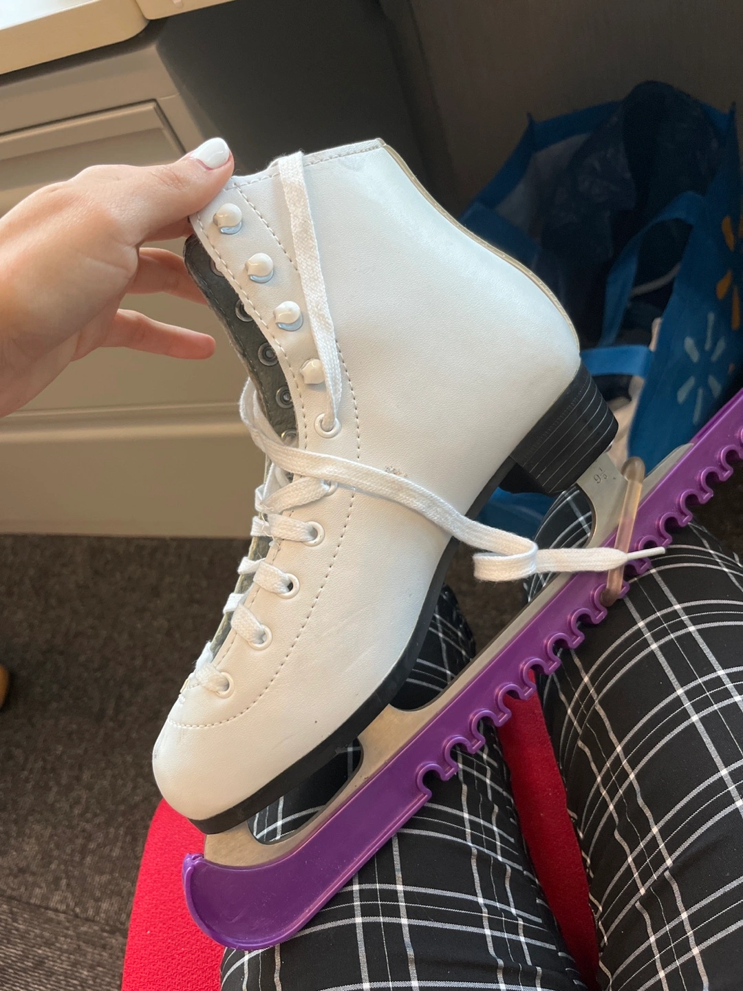 Selling a pair of white figure skates in size 9.5. my feet is 7 but I put two thick socks to be in the ice, and it gets tight. They're in good condition and ready for the ice!