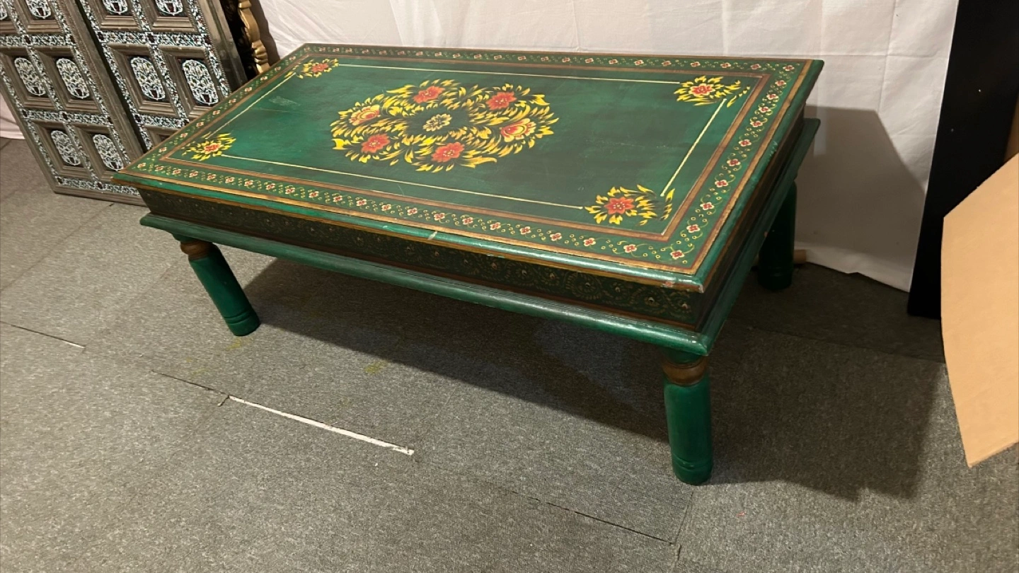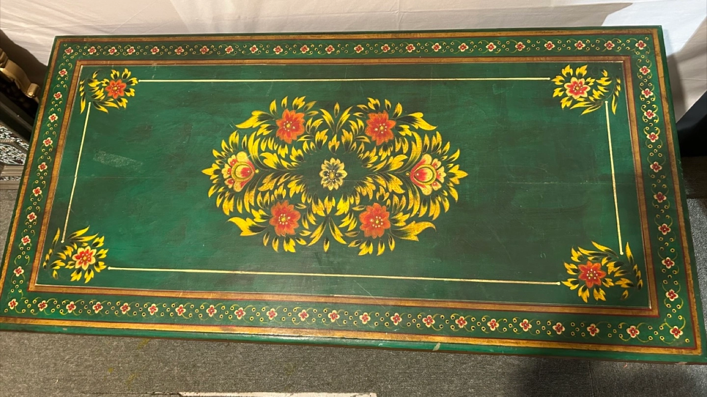 96Selling a beautiful wood hand-painted coffee table! It features a unique floral design on a green background. Perfect for adding a touch of character to your living room