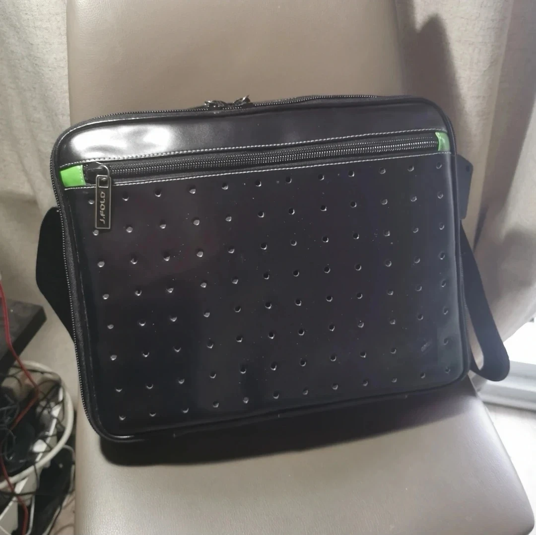 Selling a J.Fold Shouldered messenger bag in black. It's in great shape and ready for a new home! This bag is perfect for anyone looking for a stylish and functional way to carry their essentials. The bag is 100% Leather and is designed for advanced users. It's both rugged and foldable, making it a versatile choice for everyday use